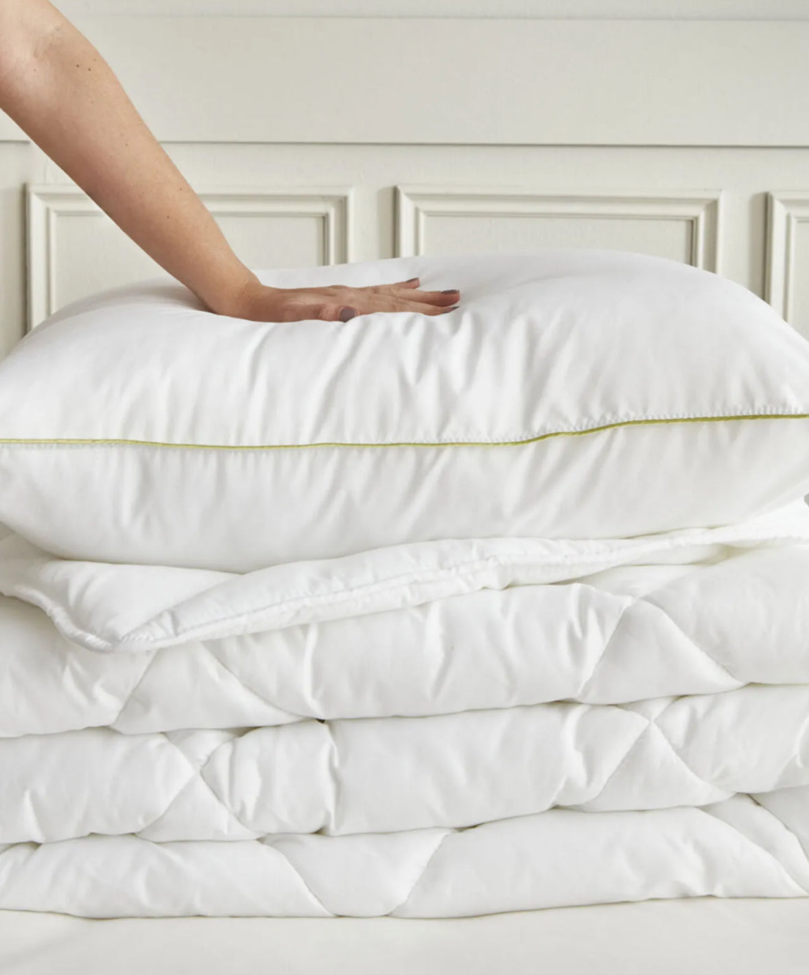 Brug dyne-sættet som det primære sengelagen i dobbeltsengen for et ekstra komfortabelt og behageligt sovemiljø. Den aloe vera-behandlede overflade føles blød mod huden og kan være med til at forbedre din søvnkomfort.