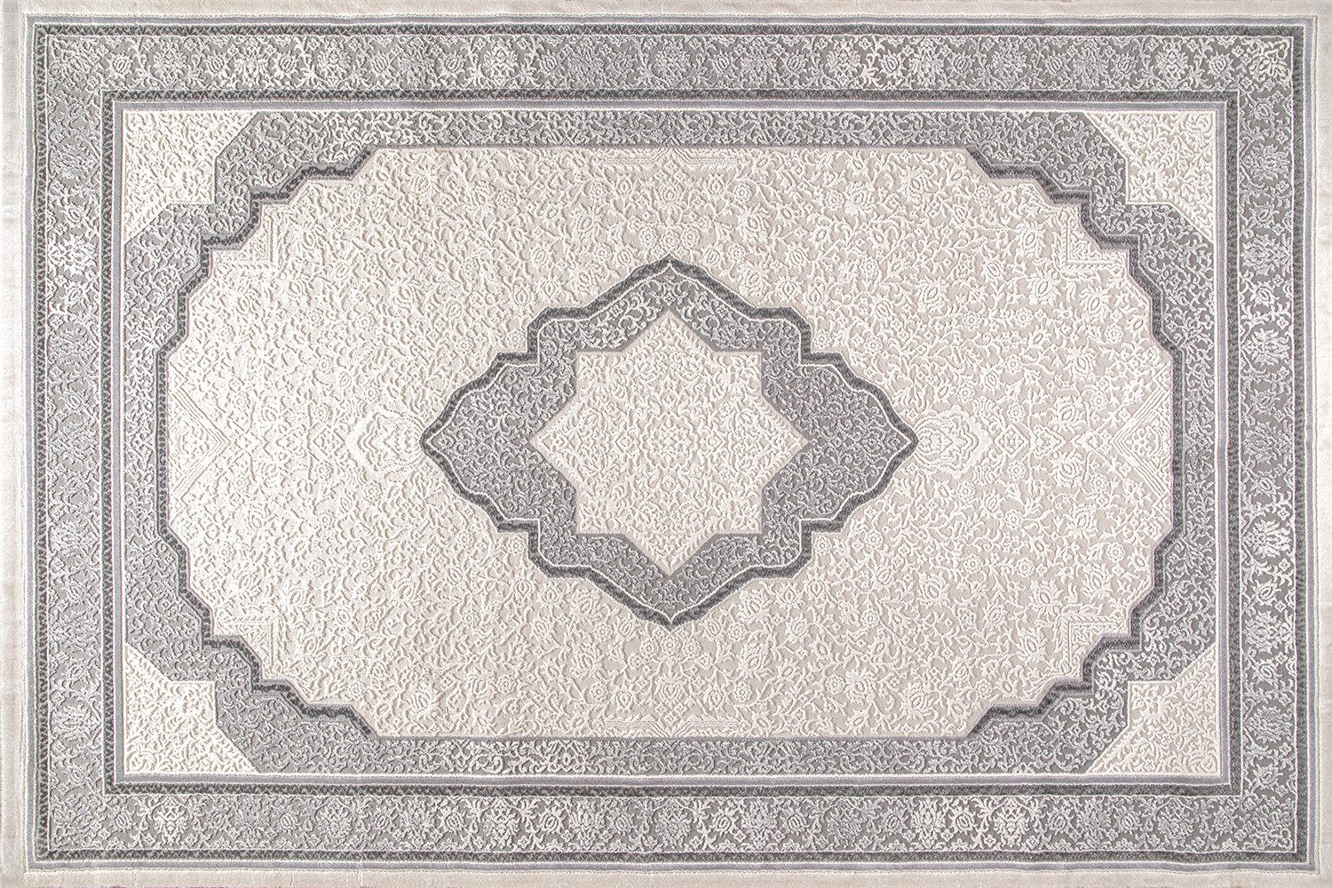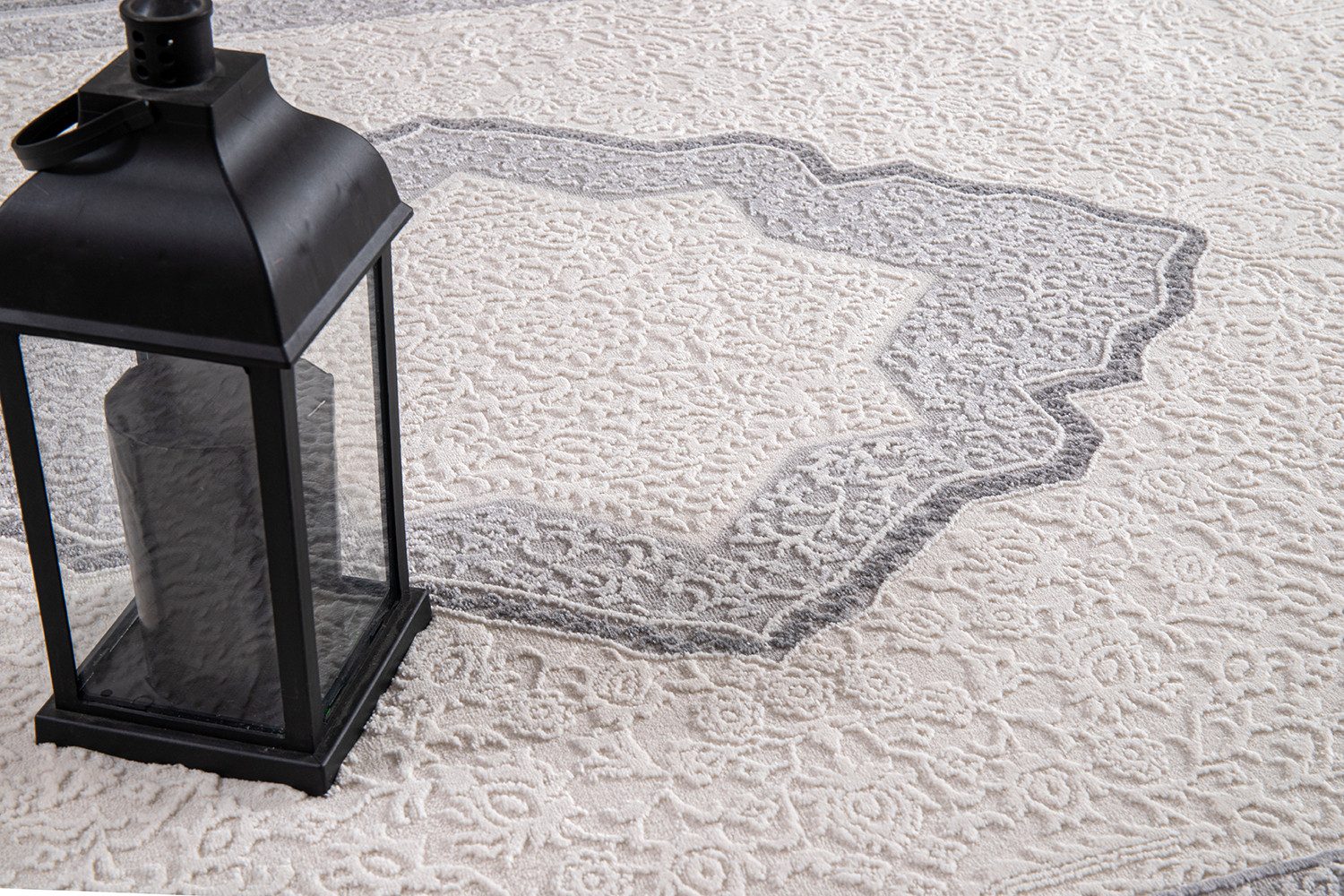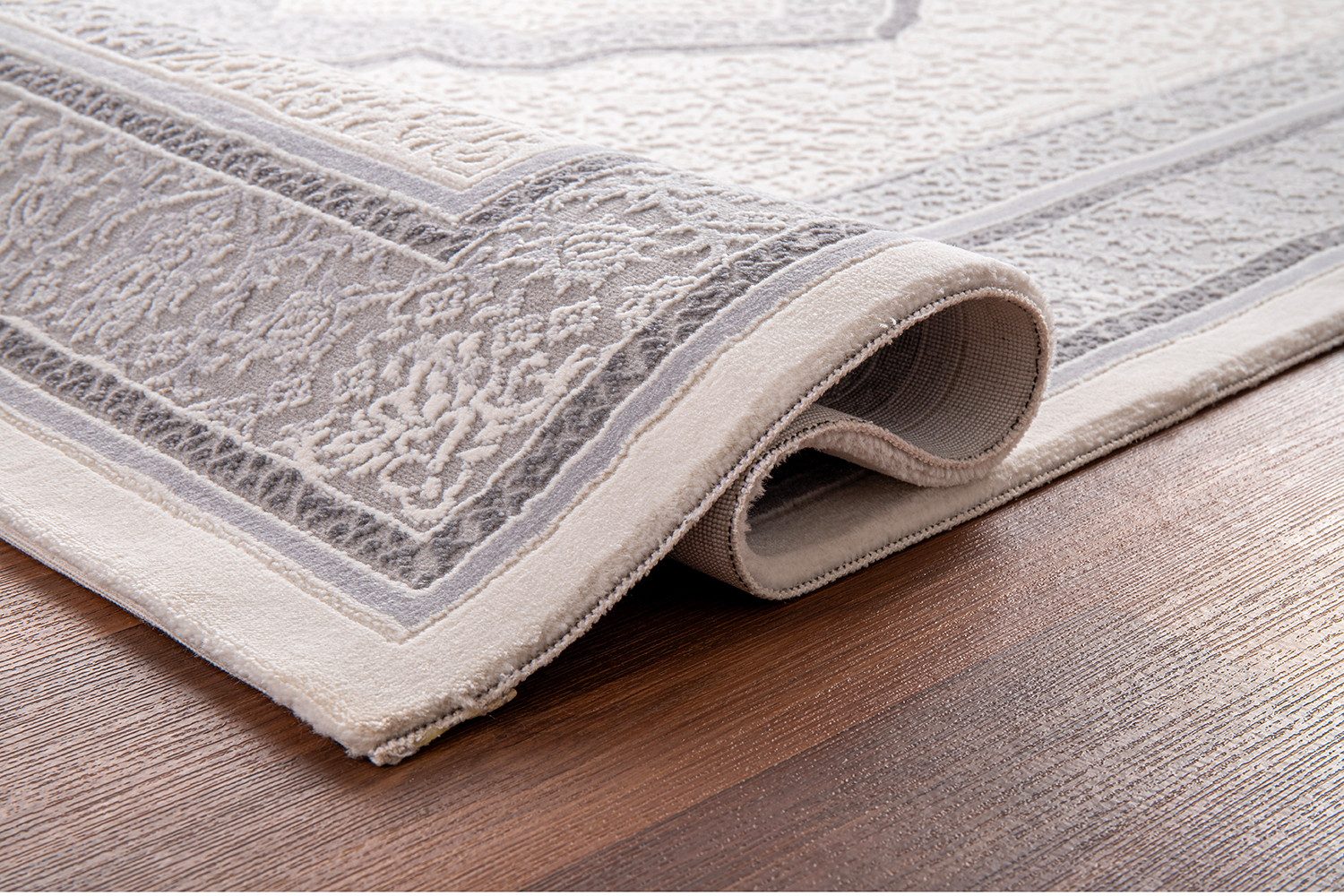 Moderne Tæppe i cream og grå farve.