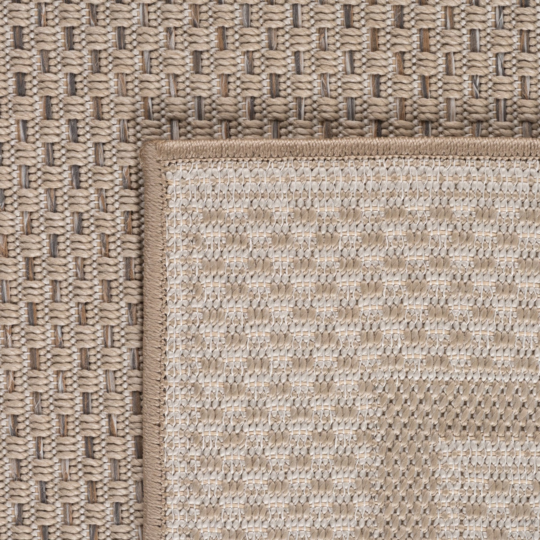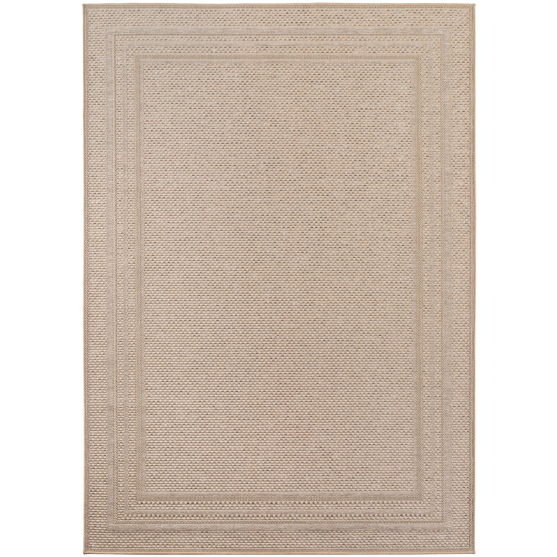 Det beige design med neutrale farver gør det nemt at matche med enhver indretning. Perfekt til dig, der ønsker et praktisk og stilfuldt tæppe til både inde og ude.