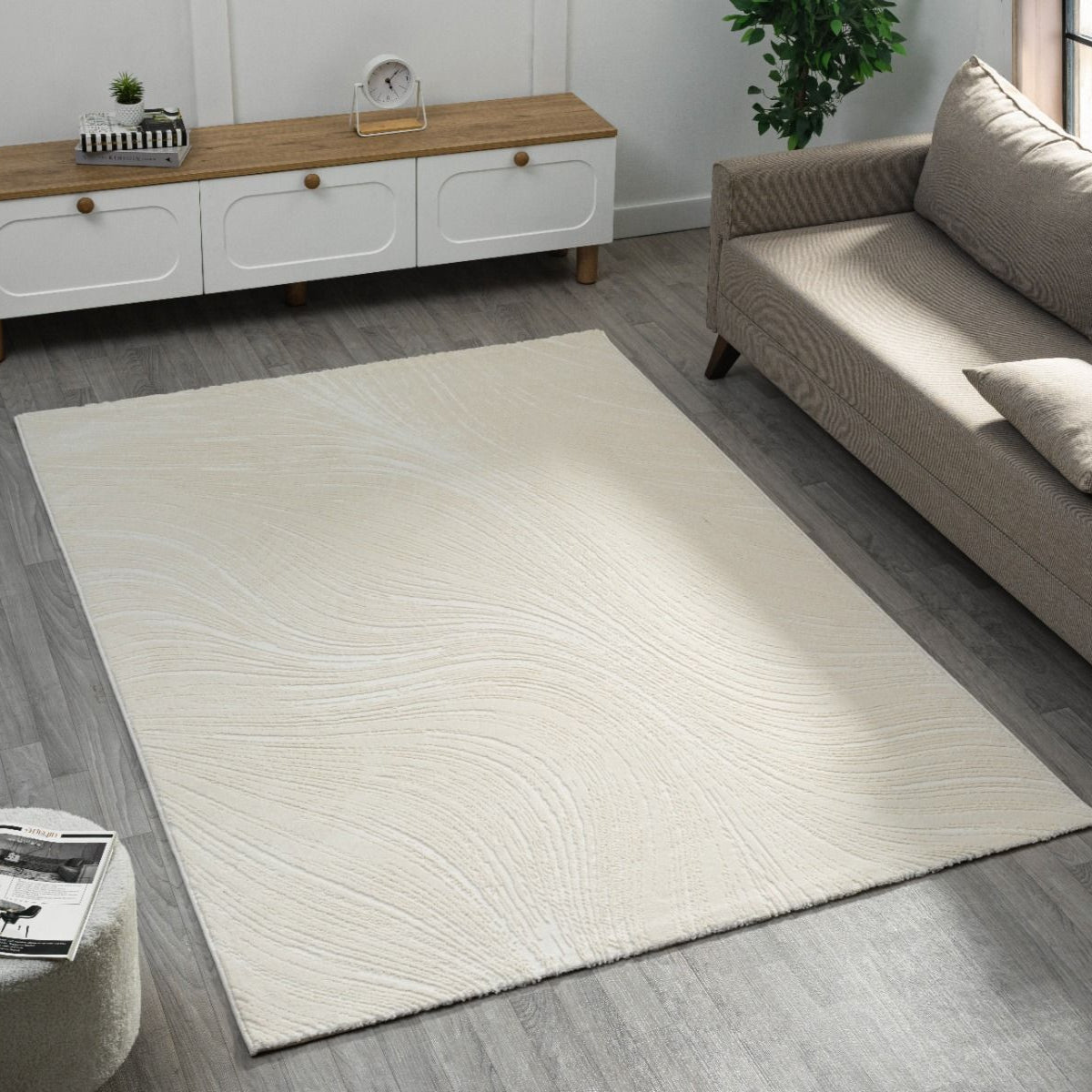 Moderne Tæppe i cream farve.