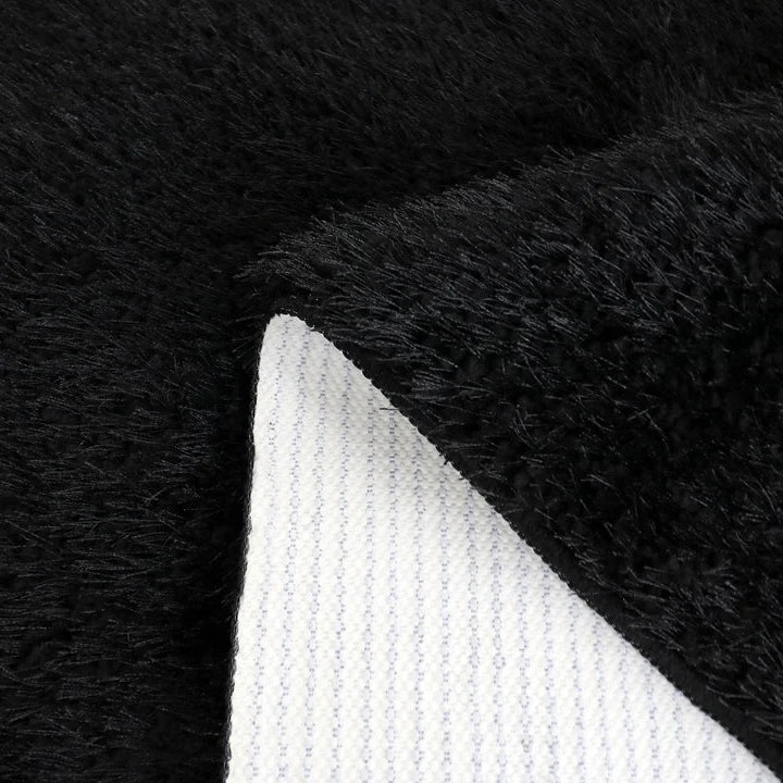 Det sorte shaggy tæppe er en smuk og stilfuld tilføjelse til ethvert hjem.