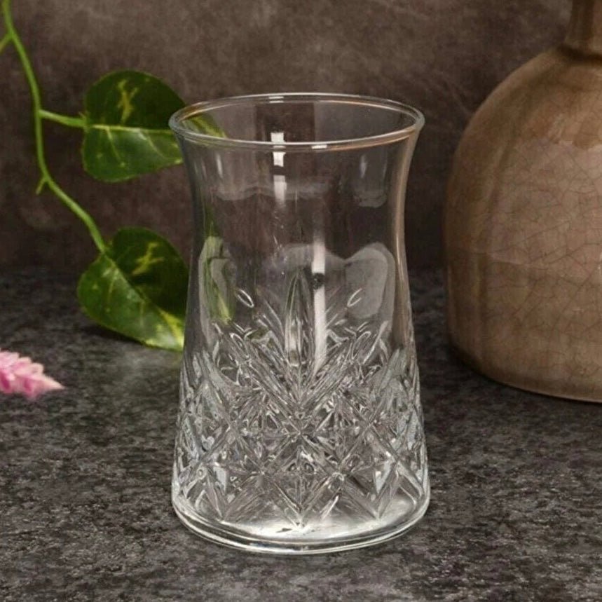 | Sæt med 6 teglas i krystaldesign til te. |