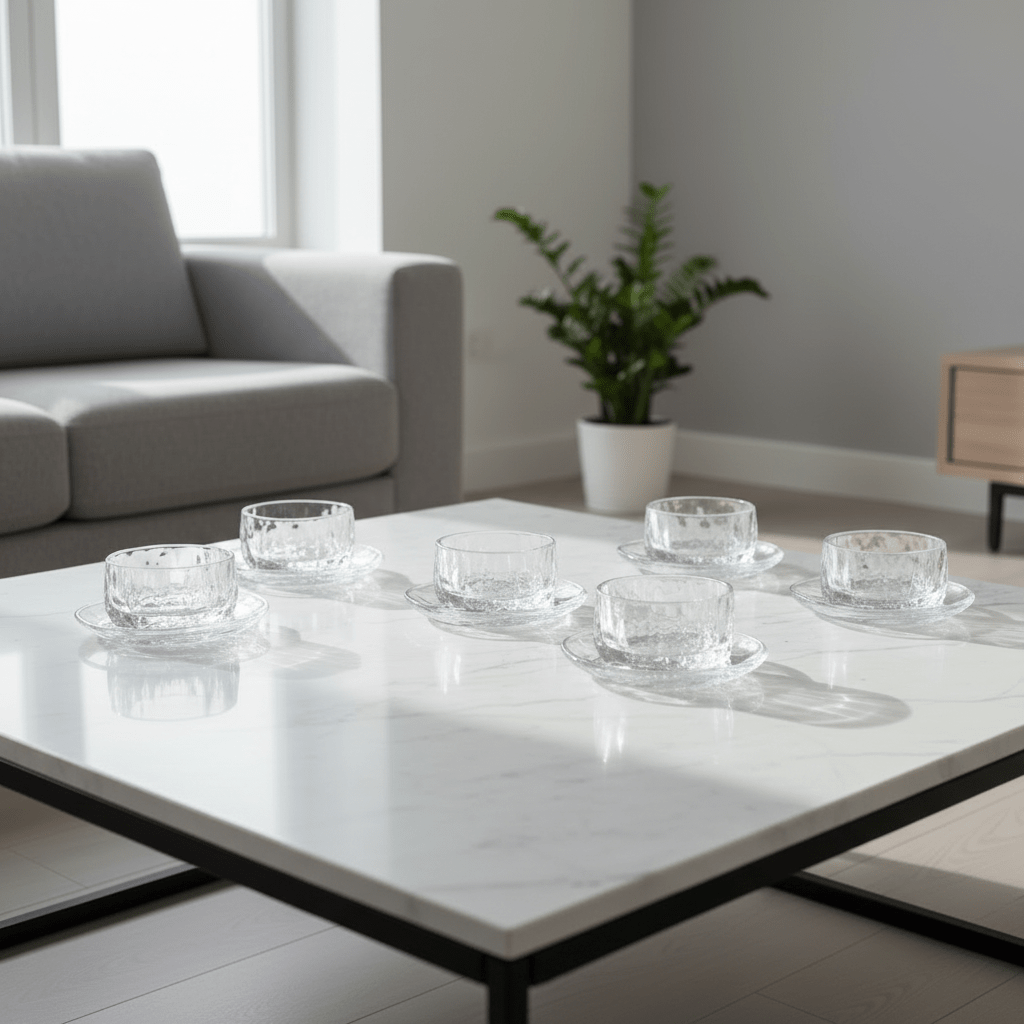 Med en kapacitet på ca. 300 ml er dessertskålene ideelle til is, frugt, søde desserter, snacks eller små forretter. Det slidstærke glas tåler opvaskemaskine og gør sættet velegnet til daglig brug – uden at gå på kompromis med æstetikken.
