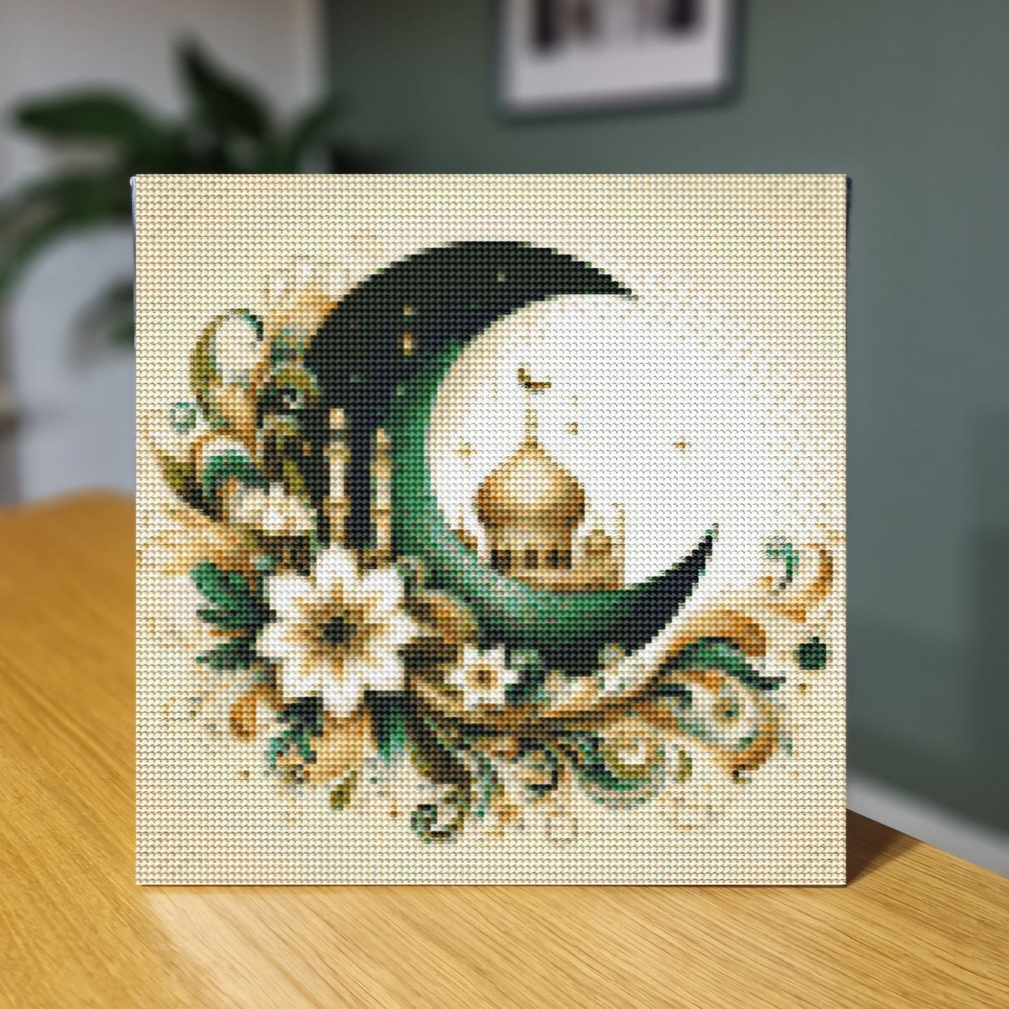 Oplev glæden ved Diamond Art, hvor kreativ fordybelse møder afslapning. Med dette smukke motiv af blomster og måne kan du skabe et funklende kunstværk, der både er dekorativt og personligt. De farverige diamantsten giver en flot 3D-effekt og et eksklusivt udtryk, når lyset rammer motivet.