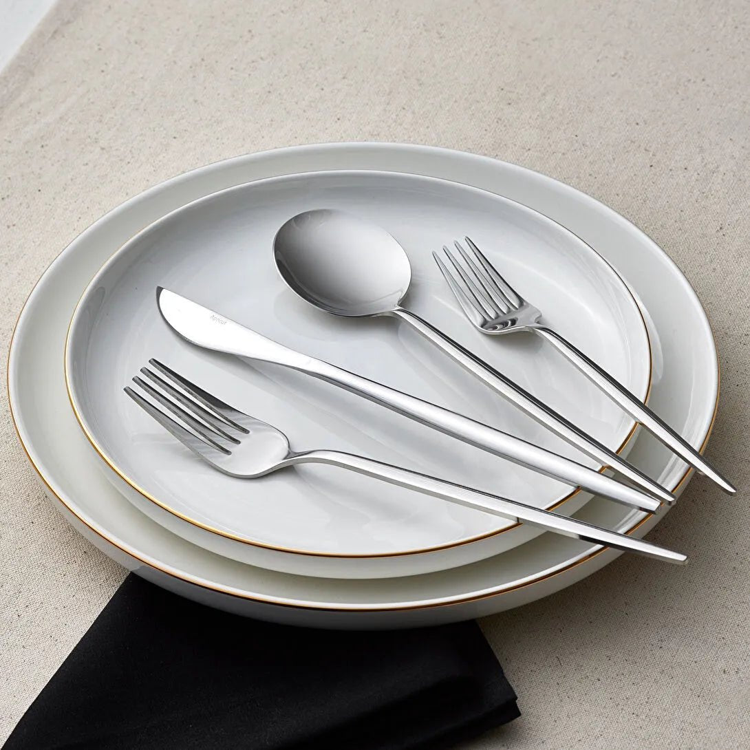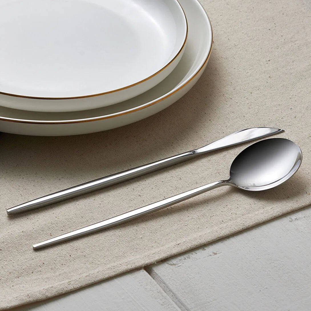 Det skinnende sølvlook giver et sofistikeret udtryk, der komplementerer enhver bordopdækning – fra moderne minimalistisk til klassisk stil. Bestikket leveres i en smuk opbevaringsæske, som både beskytter sættet og gør det perfekt som gave.