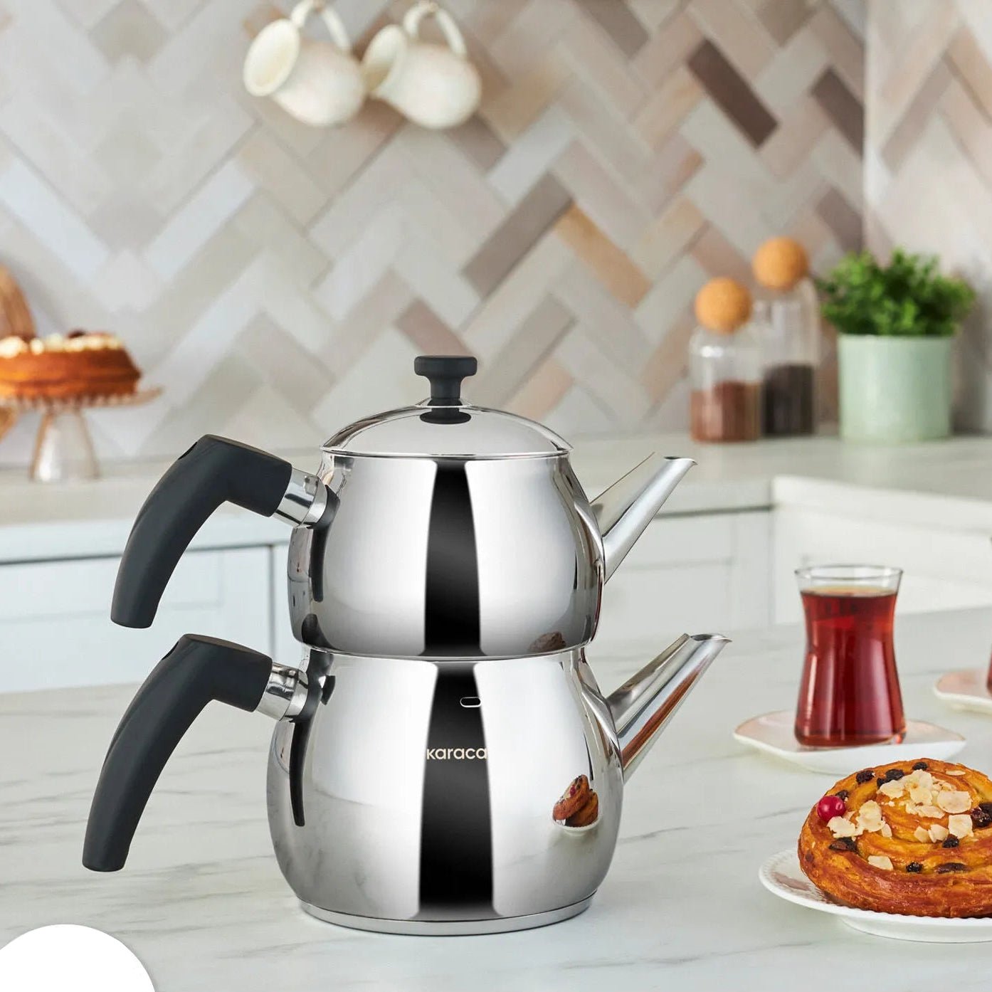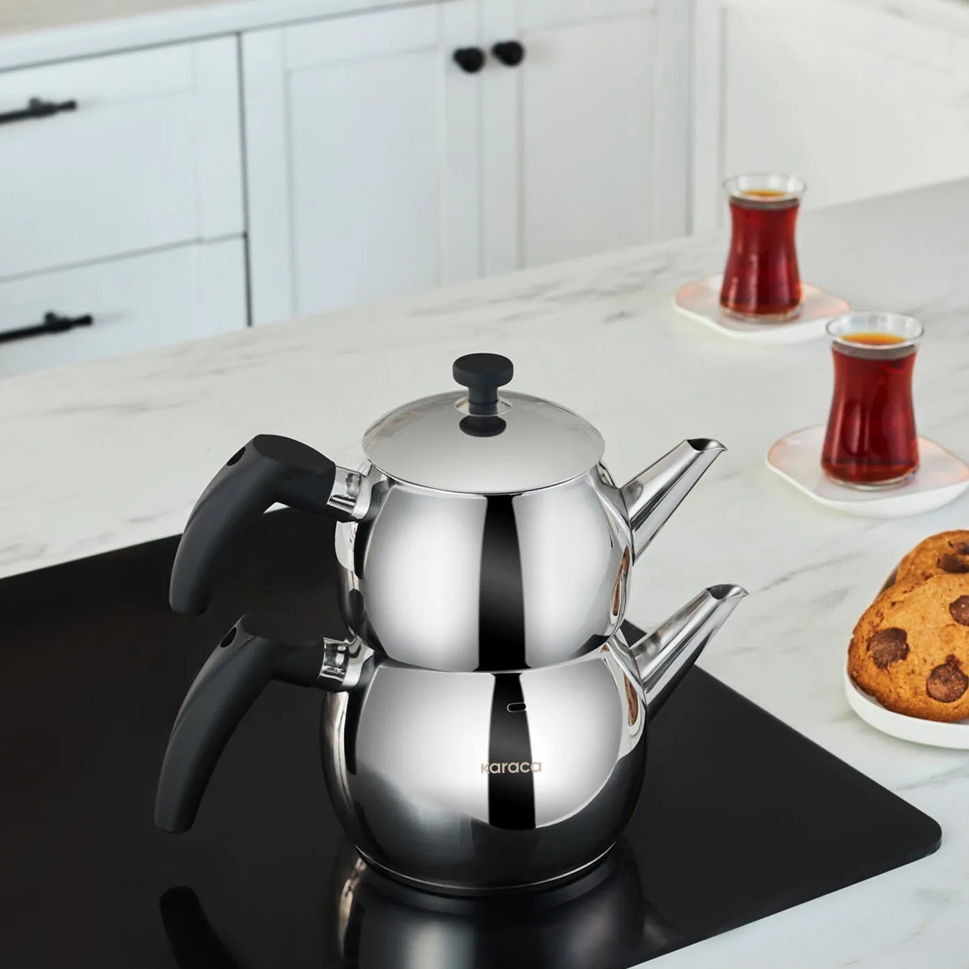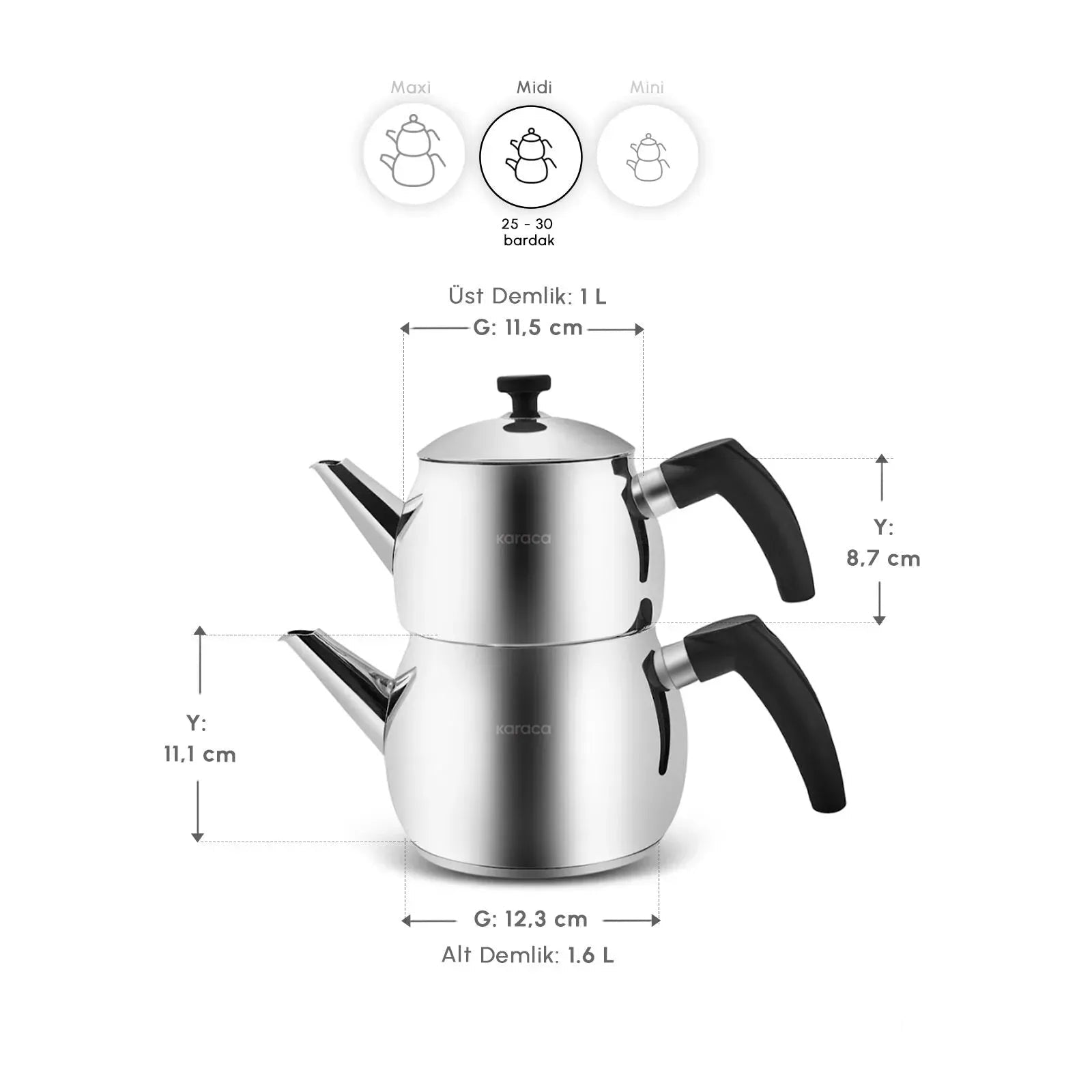 Karaca Midi Alim Tekandesæt er et funktionelt og stilrent valg til dig, der ønsker et pålideligt og rummeligt tekandesæt til daglig brug. Det klassiske og tidløse design passer perfekt ind i ethvert køkken og egner sig både til hverdagsbrug og servering for gæster.