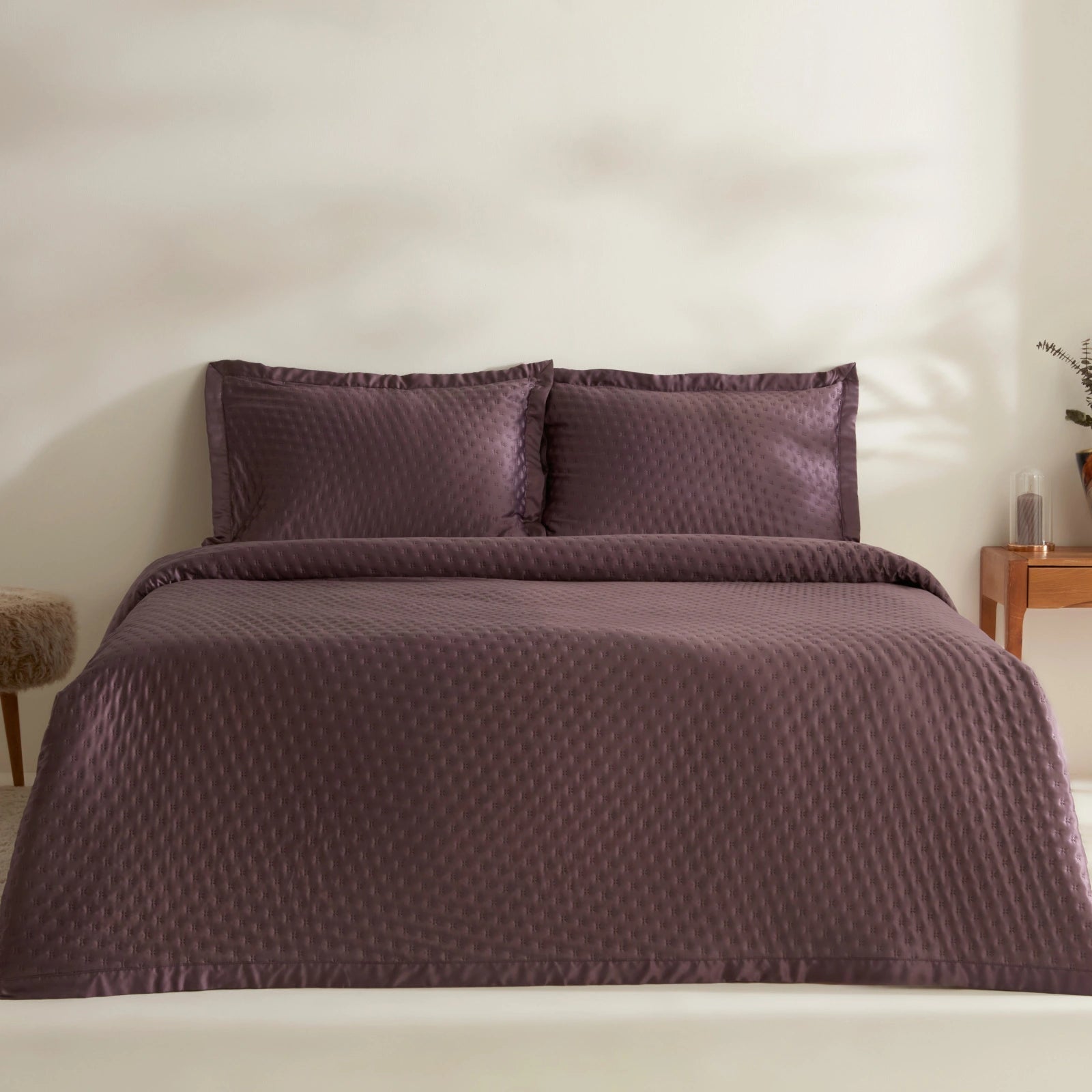 Brug Alice dobbeltseng-overtrækket som et dekorativt og funktionelt lag på sengen. Det kan nemt kombineres med puder og tæpper i matchende eller kontrasterende farver for at skabe et personligt og elegant soveværelsesudtryk. Den mørklilla nuance tilføjer dybde og karakter til rummet. Karaca Home Alice dobbeltseng-overtræk er et godt valg, hvis du ønsker komfort, farve og et moderne udtryk i dit soveværelse.