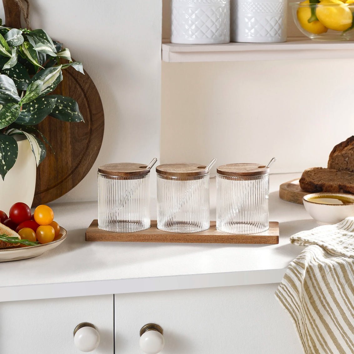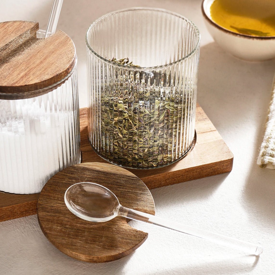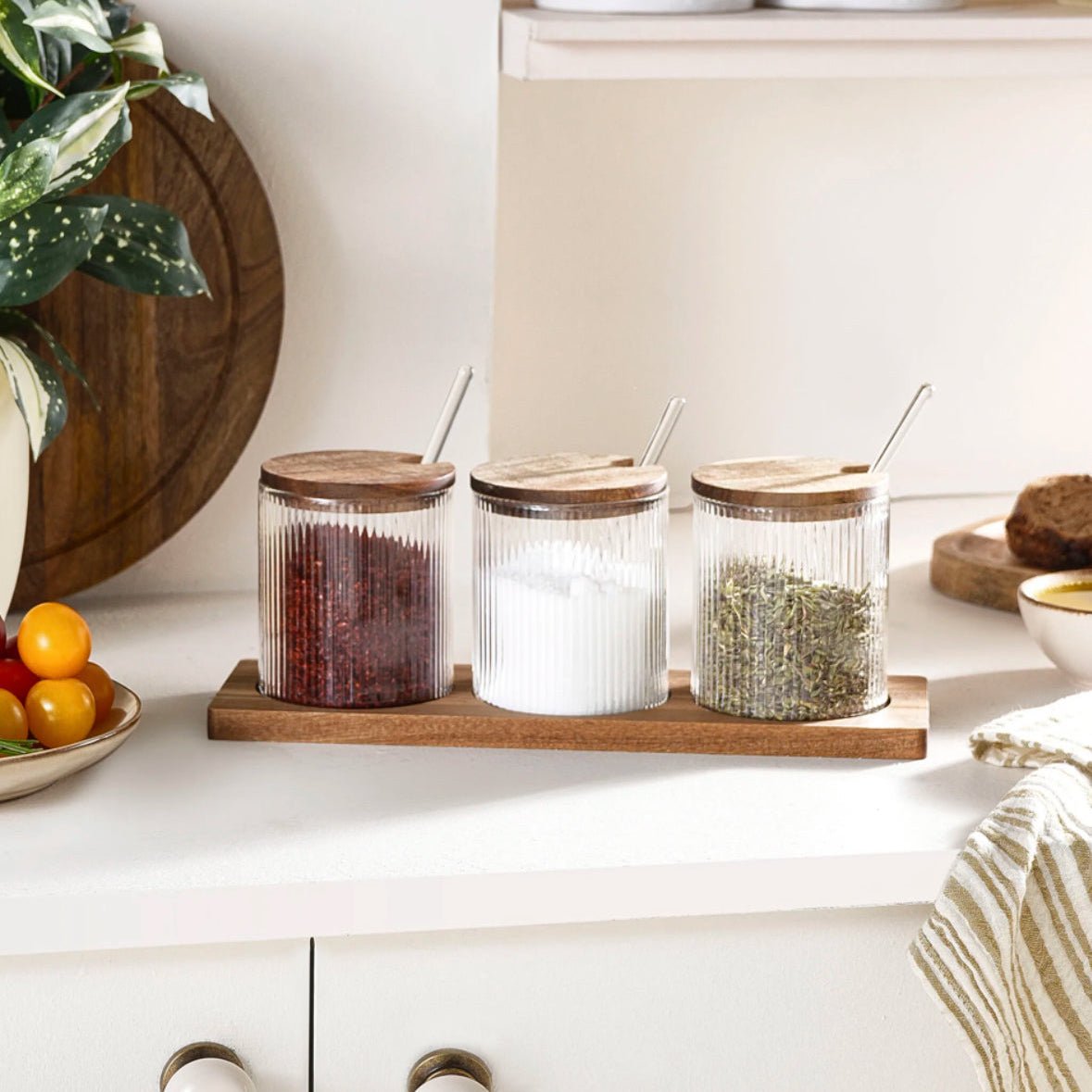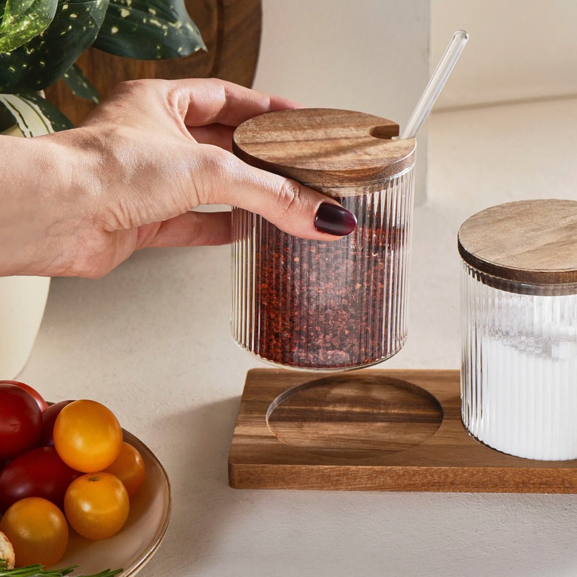 De transparente glasbeholdere gør det nemt at se indholdet, og de rene linjer passer ind i både moderne og klassiske køkkener. Sættet er praktisk i hverdagen og hjælper med at holde dine krydderier organiseret og klar til brug.