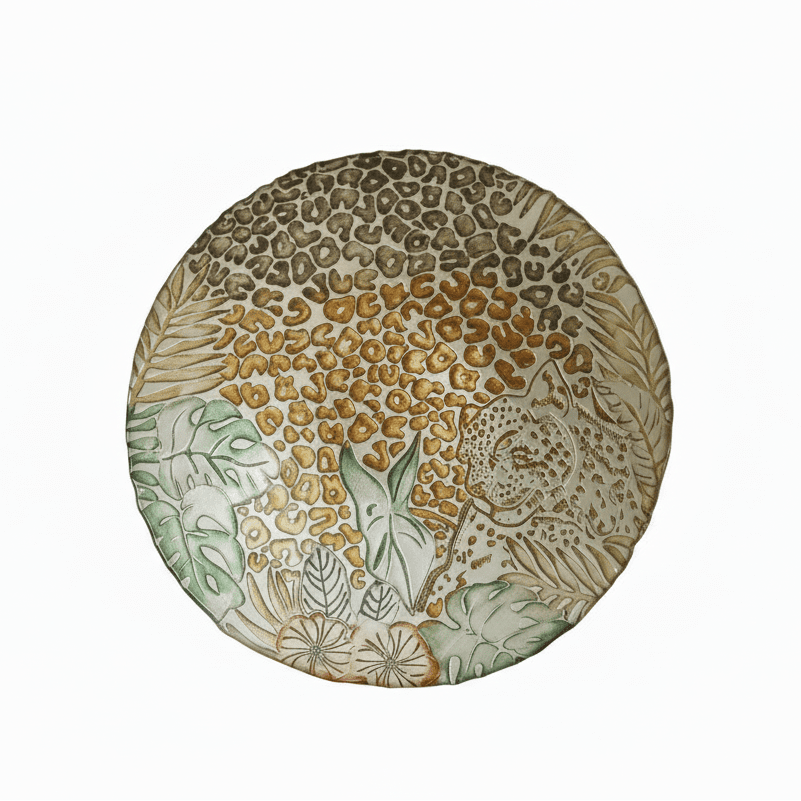 Den dekorative tallerken er fremstillet i glas, som giver en flot finish og et let, raffineret look. Brug den som et iøjnefaldende blikfang på spisebordet, skænken eller i reolen – eller kombiner den med andre dekorative elementer for et harmonisk og personligt udtryk.