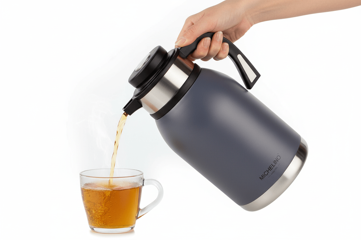En praktisk og stilfuld termokande, der gør servering nem og holder drikken ved den rette temperatur.