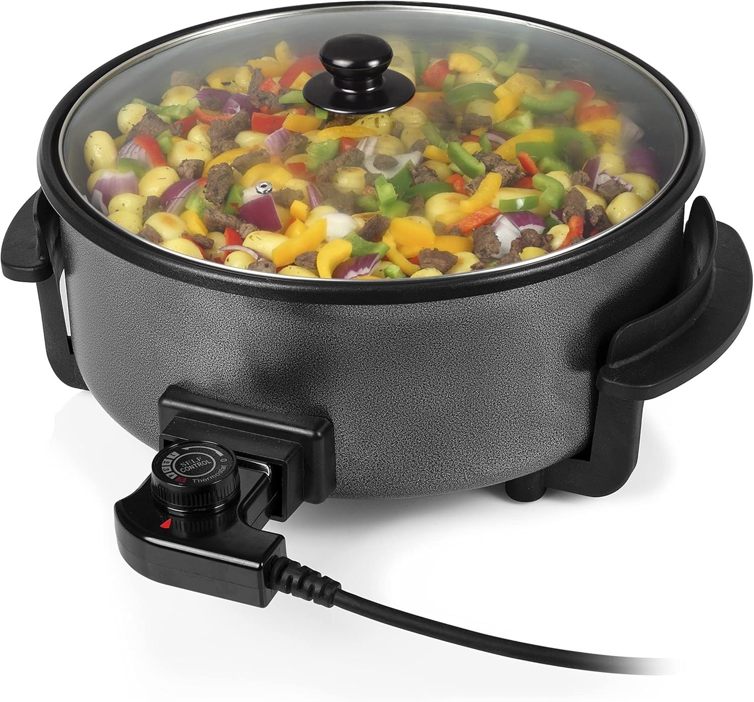 Med en rummelig kapacitet på 5 liter er stegepanden velegnet til madlavning til op til 4 personer. Den kraftige effekt på 1500 watt sikrer hurtig opvarmning og jævn varmefordeling.