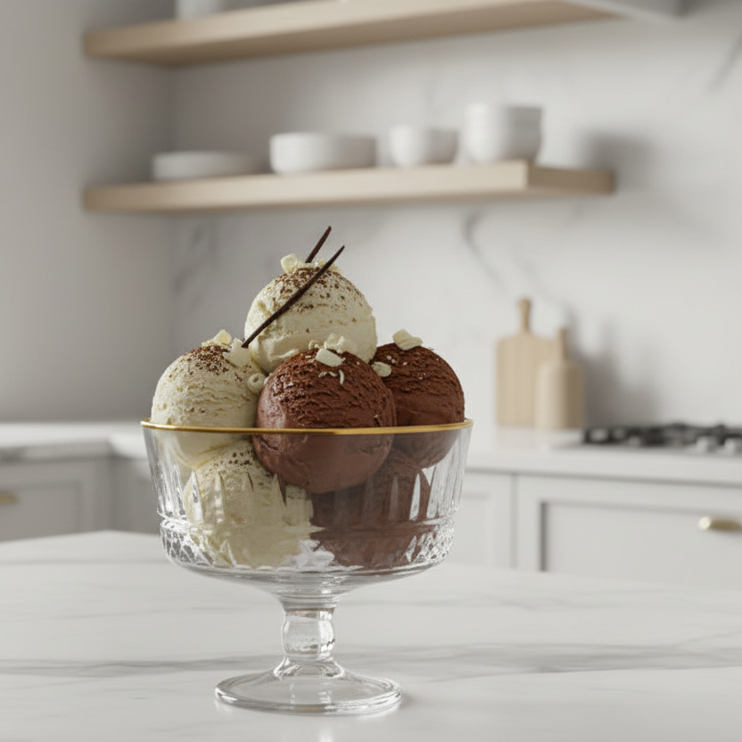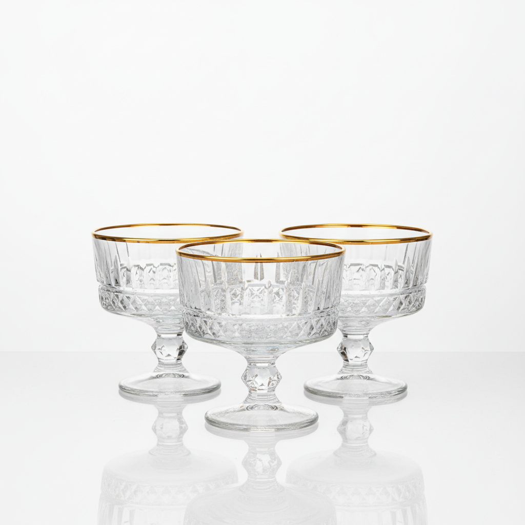 Dessertglassene kombinerer klassisk elegance med dekorative detaljer og passer perfekt til både hverdag og særlige anledninger.