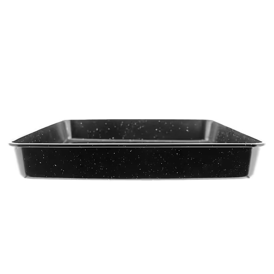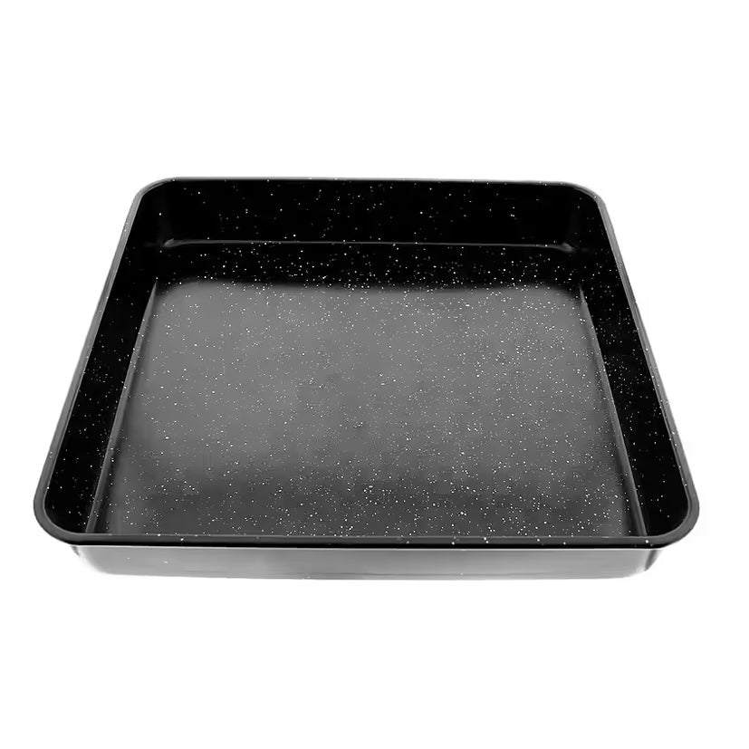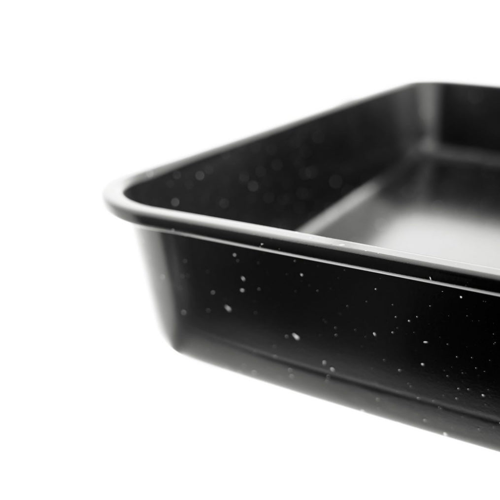 Granitmaterialet er robust og slidstærkt og giver bradepanden et moderne udtryk i elegant sort. Bradepandens firkantede form gør den alsidig til tilberedning af tærter, kager, bagværk og meget mere.