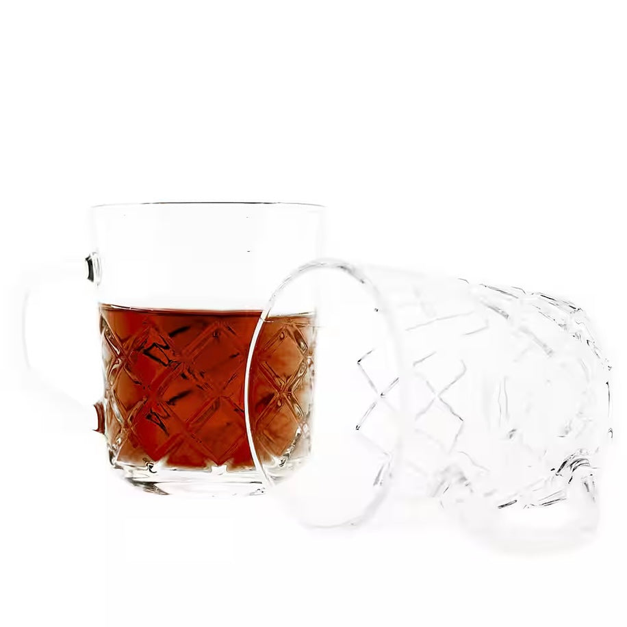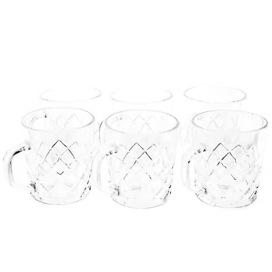 Vores sæt med 6 glas med håndtag kombinerer funktionalitet og stil for at tilføje et særligt touch til dine te-, kaffe- og juice-øjeblikke