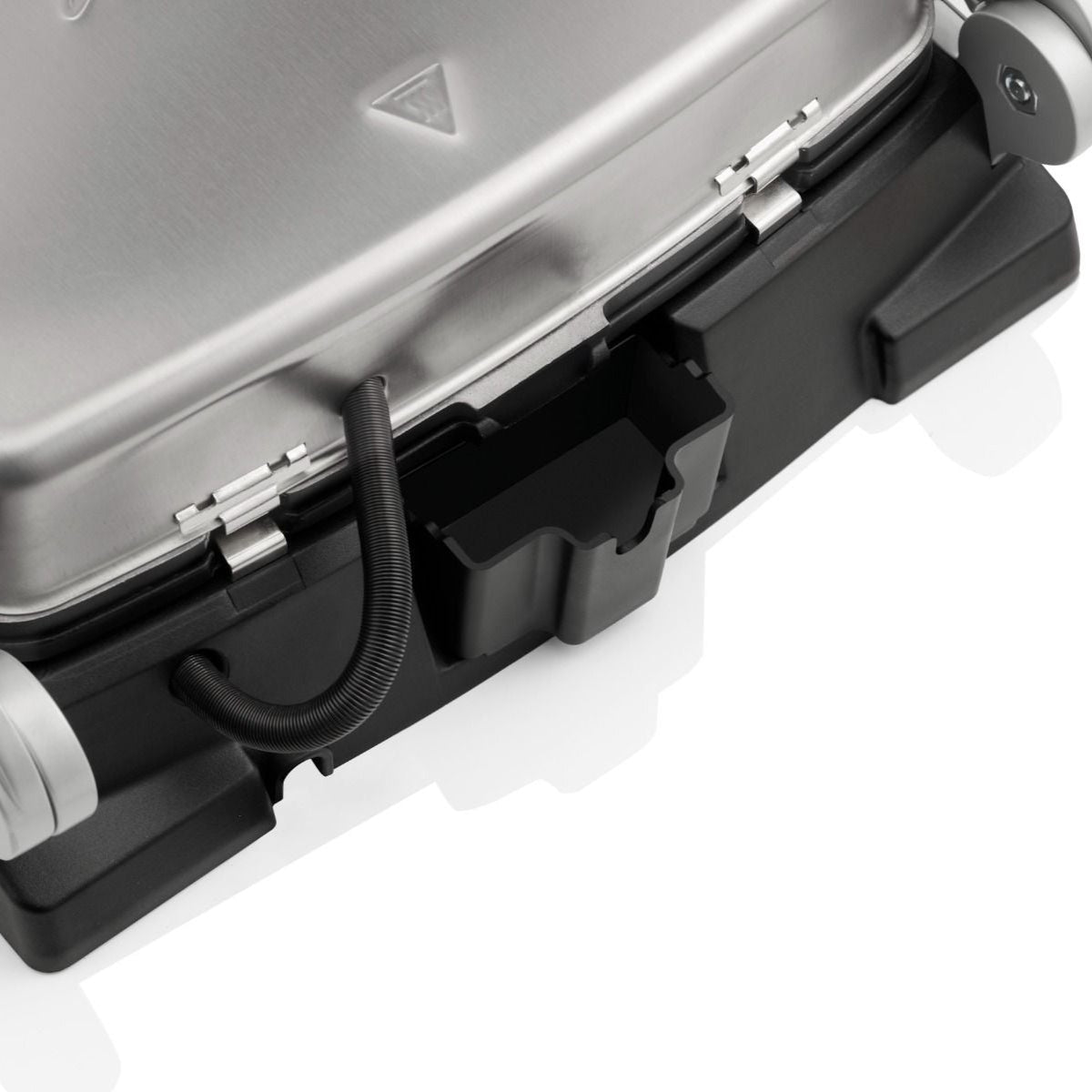 - Jævn tilberedning takket være termostat og flydende hængsler — resultater med sprødt ydre og gennemvarm kerne.
