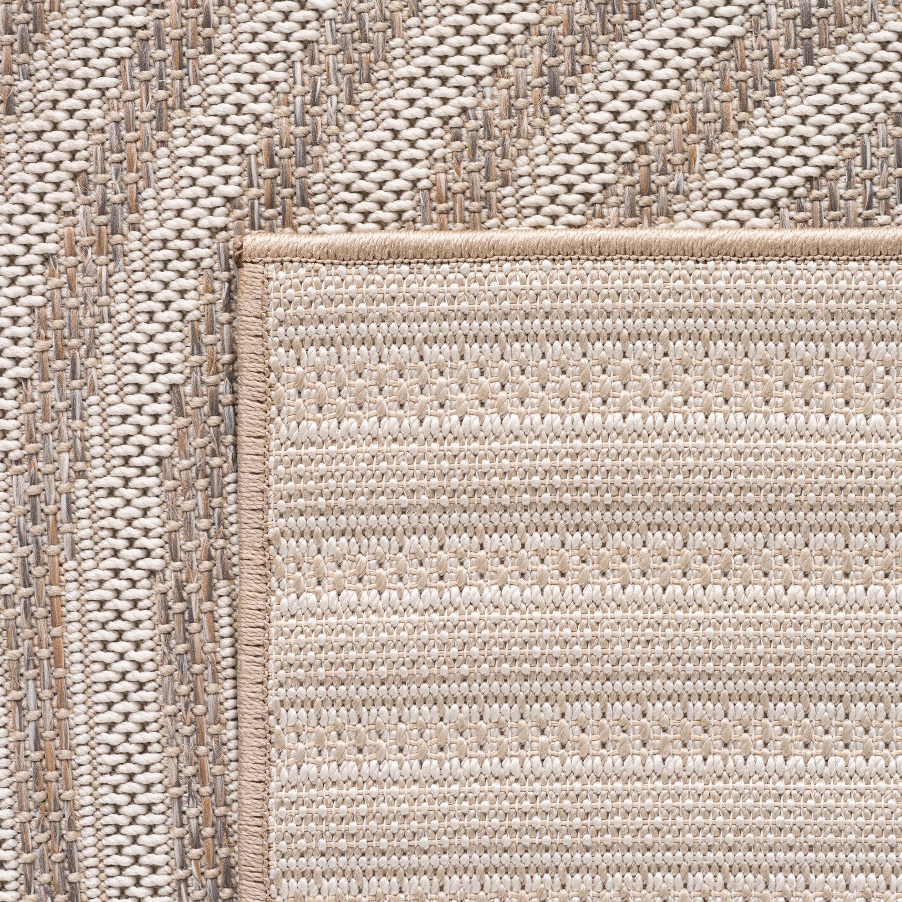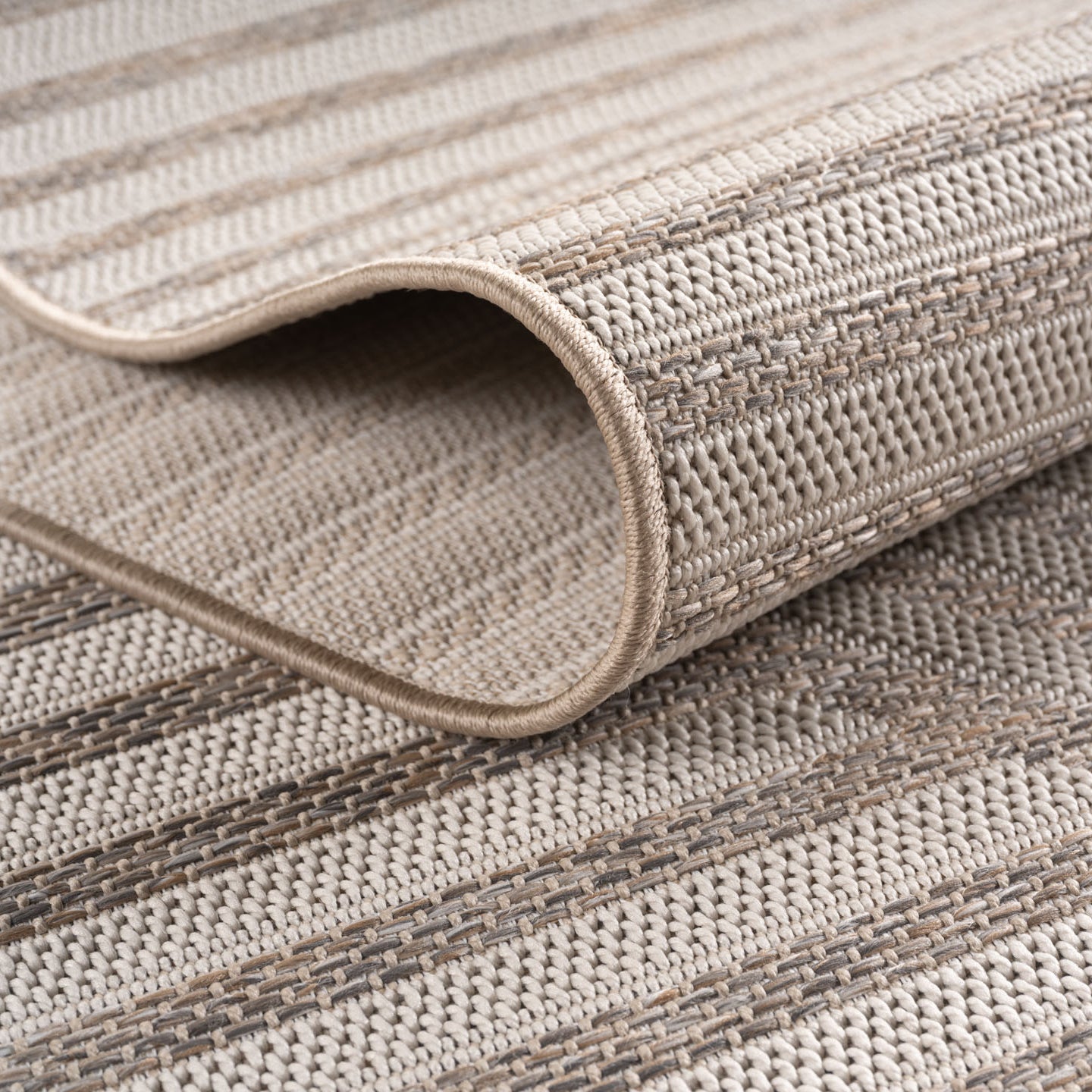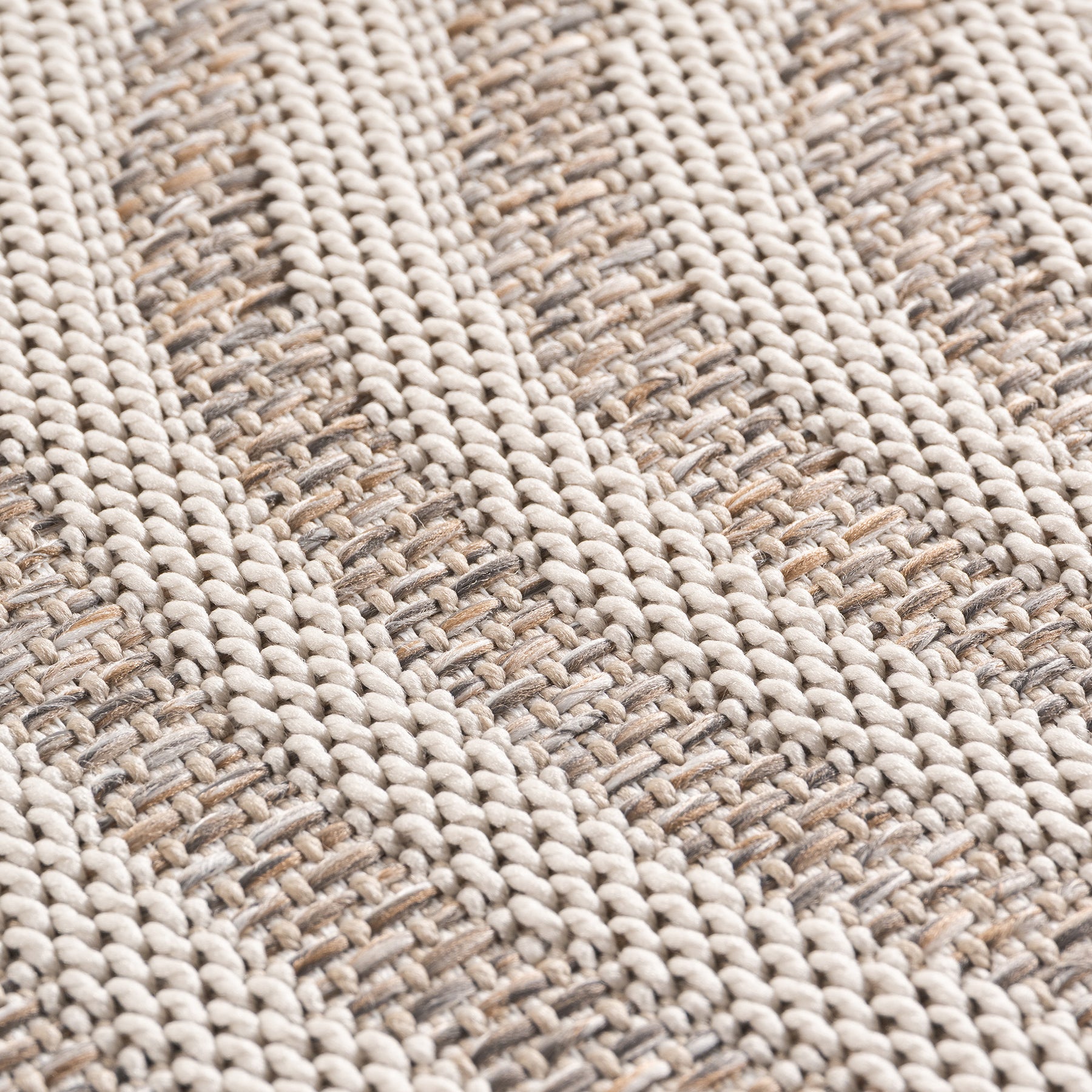 Det beige design med neutrale farver gør det nemt at matche med enhver indretning. Perfekt til dig, der ønsker et praktisk og stilfuldt tæppe til både inde og ude.