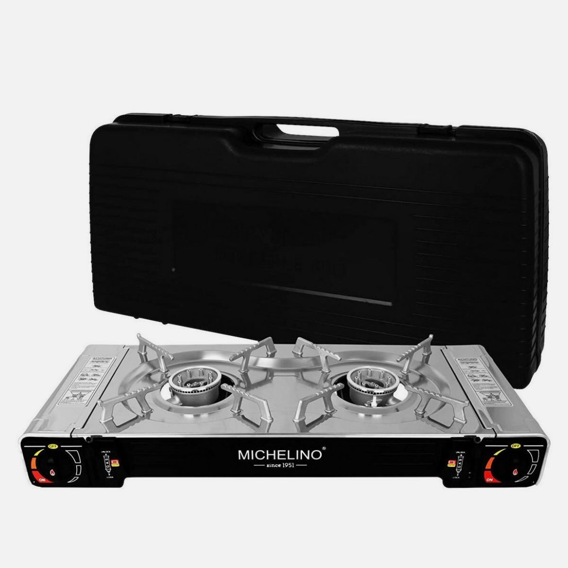 Michelino dobbelt gaskomfur kombinerer høj ydeevne, sikkerhed og stil i ét kompakt design. Med to kraftfulde brændere og en skinnende rustfri ståloverflade får du både funktionalitet og et flot udseende – uanset hvor du laver mad.