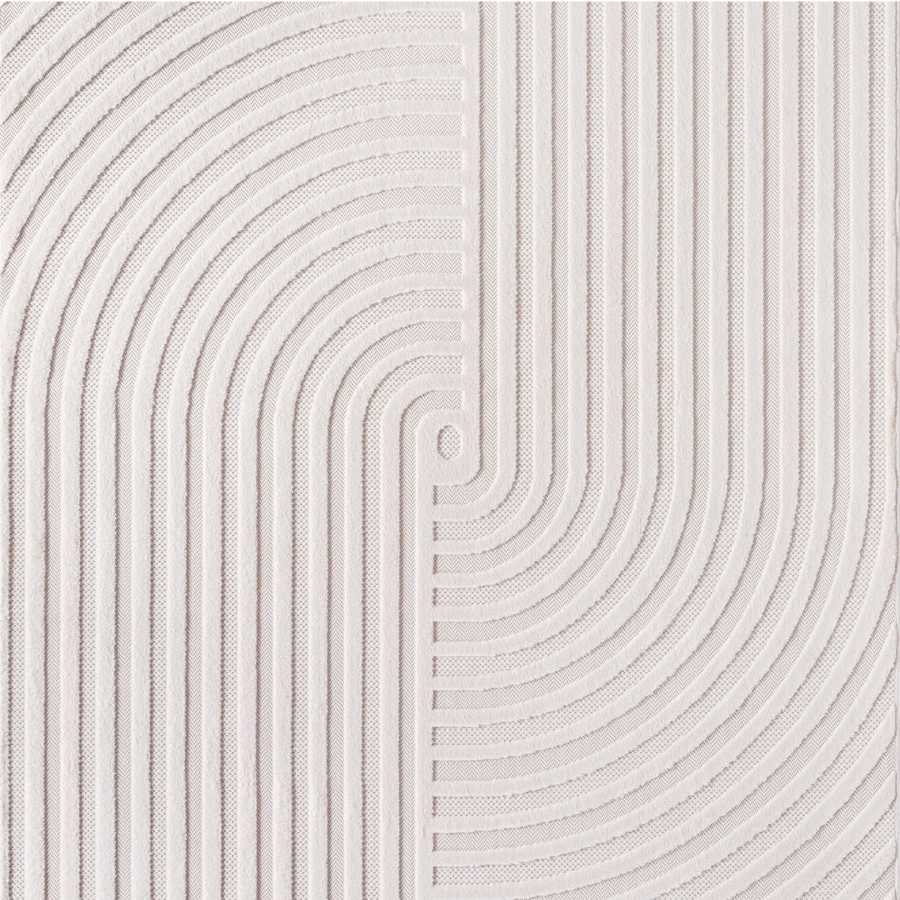 Moderne tæppe i cream farve og stilfuldt mønster, der passer perfekt til nutidens indretning af boligen.