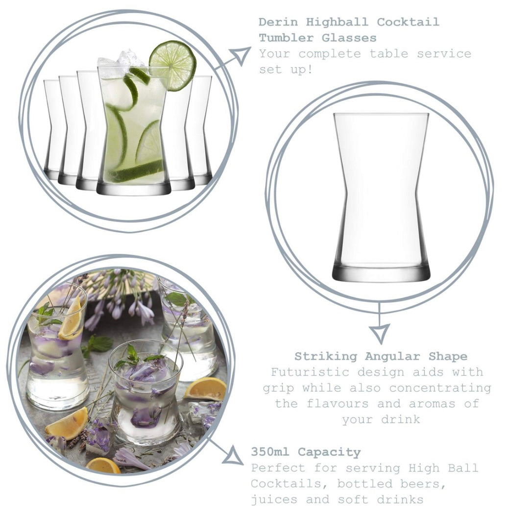 Opgrader din borddækning med disse klassiske og elegante drikkeglas fra LAV Derin. Med deres tidløse design og klare glasfinish passer de perfekt til både hverdag og festlige anledninger. Glassene ligger godt i hånden og rummer 350 ml, hvilket gør dem ideelle til vand, juice, sodavand, cocktails og meget mere.