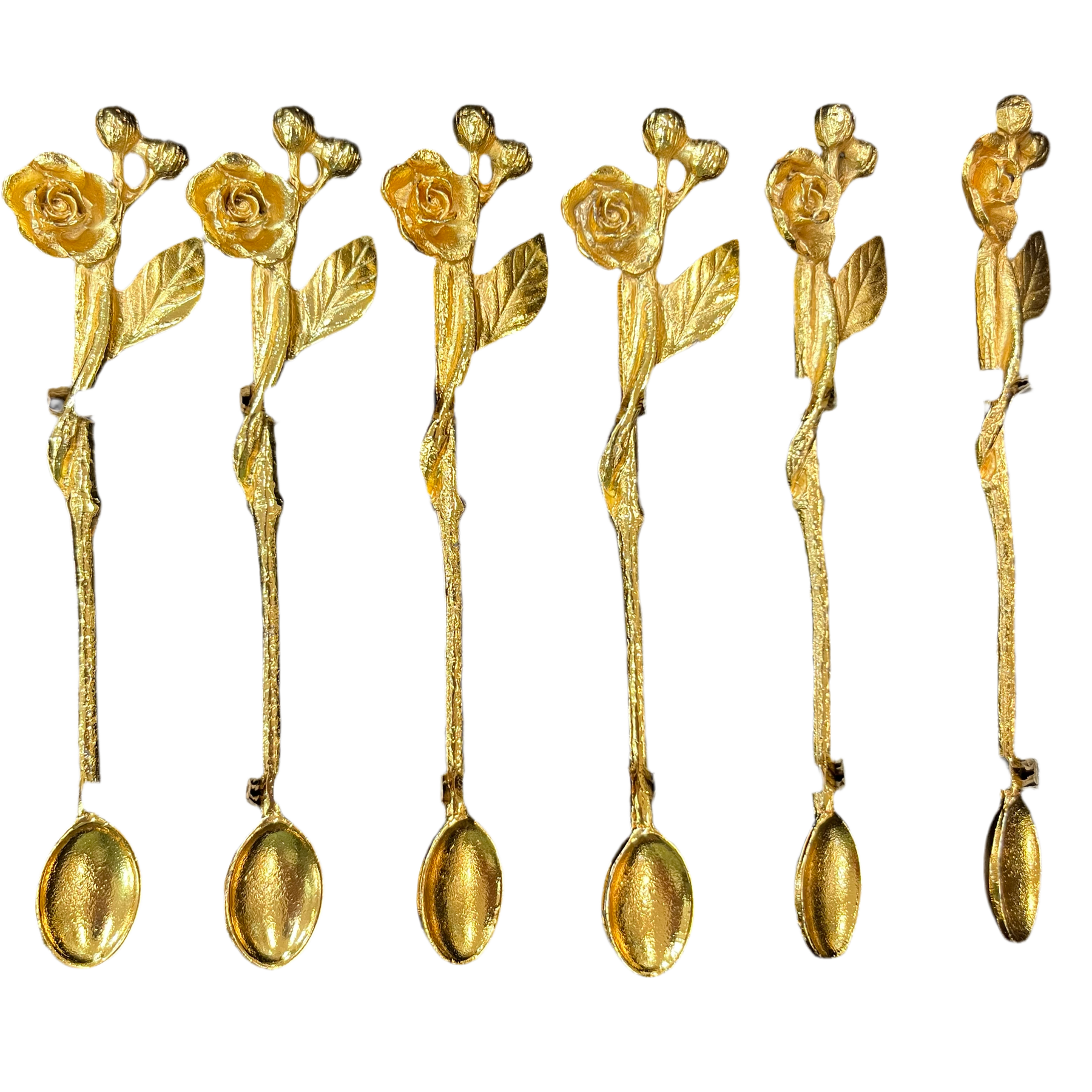 Antal: 6 stk.Farve: Mat guldMateriale: MetalLængde: 14 cmDesign: Blomstret skaftMærke: Interlife