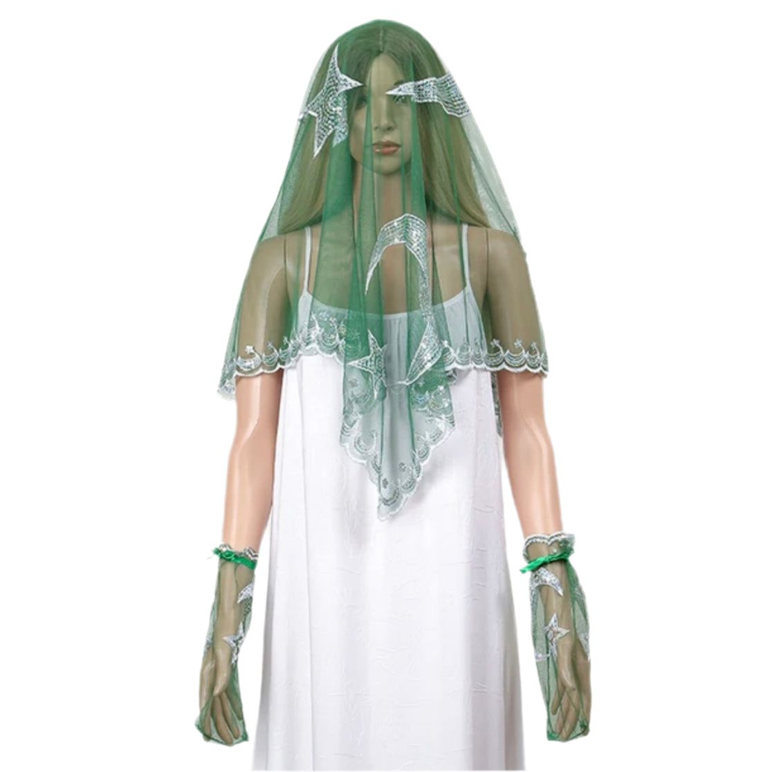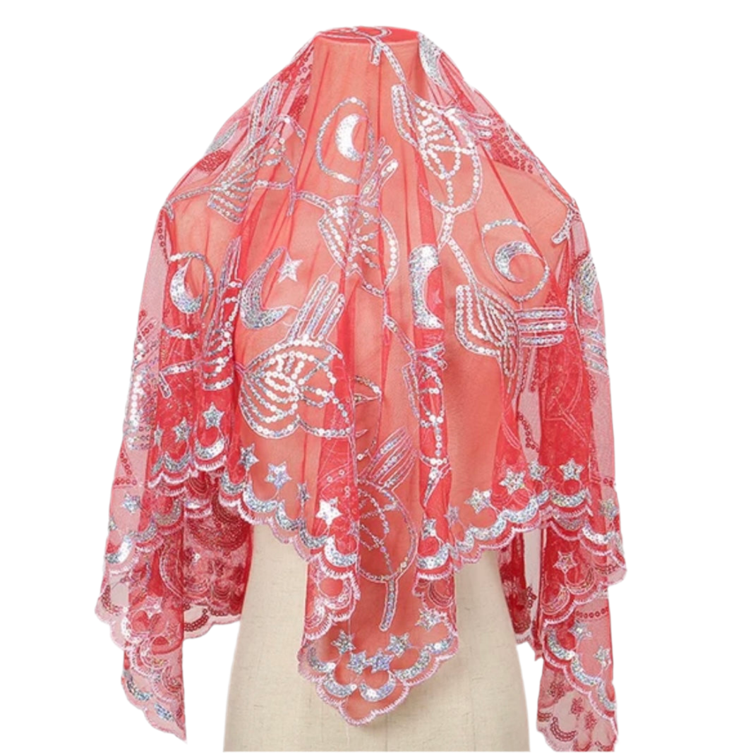 Gør hennanatten uforglemmelig med dette smukke brudeslør dekoreret med glitrende pailletter – fås i både dyb rød og klassisk grøn, farverne der symboliserer kærlighed, lykke og ny begyndelse.