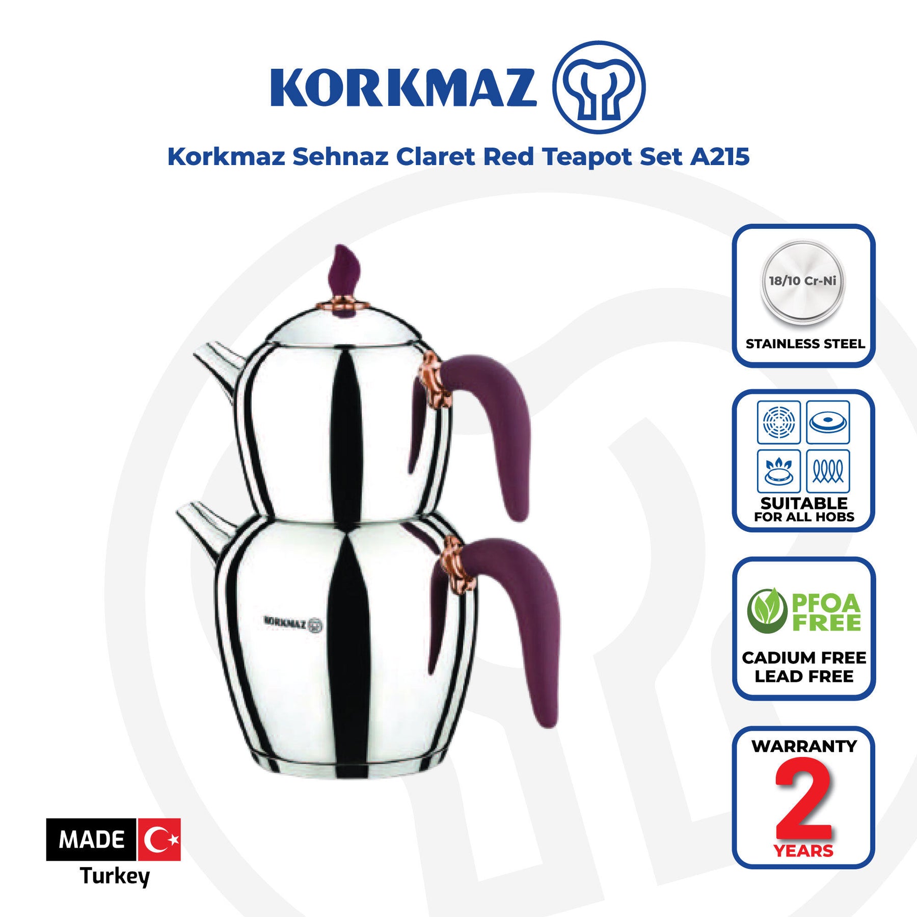 Sættet indeholder: 1 nedre kande til vand med kapaciteten 2,3 liter, 1 øvre kande til te med kapaciteten 1,1 liter og 1 låg.