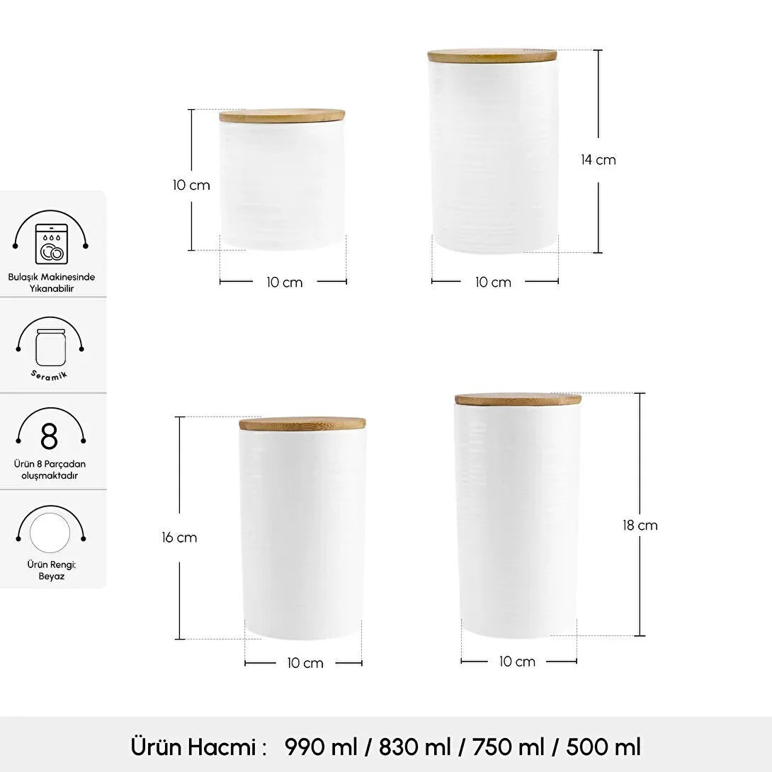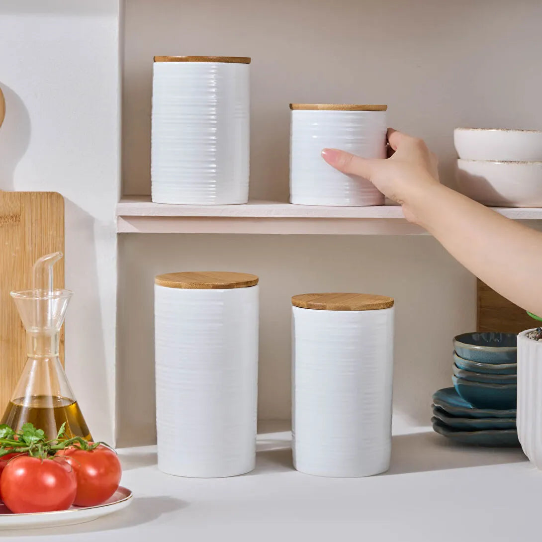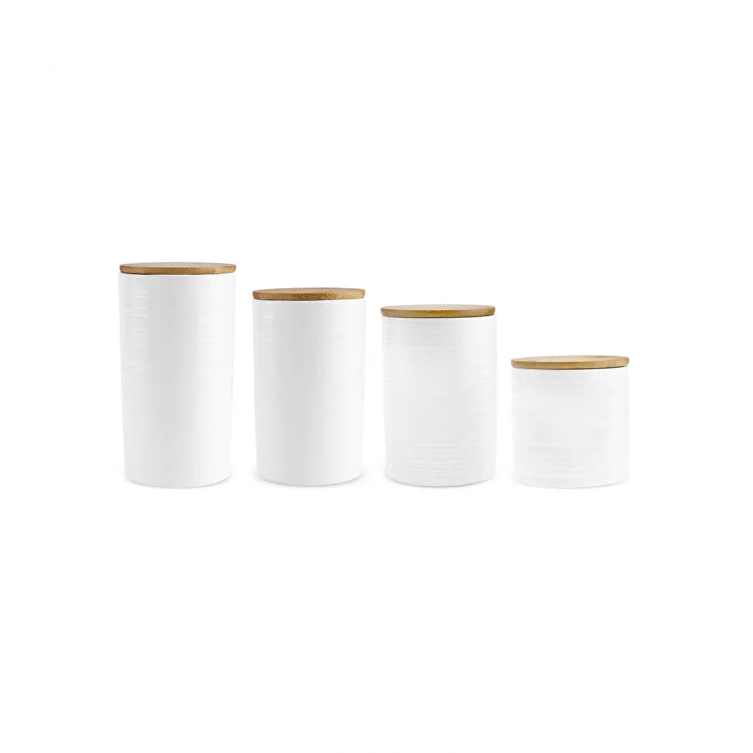 Perfekt til opbevaring af krydderier, tørrede urter, kaffe, te eller andre køkkeningredienser – alt sammen i et smukt, sammenhængende sæt.