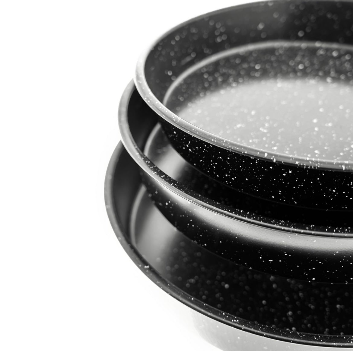 Granitmaterialet er robust og slidstærkt og giver bagepladerne et moderne udtryk i elegant sort.