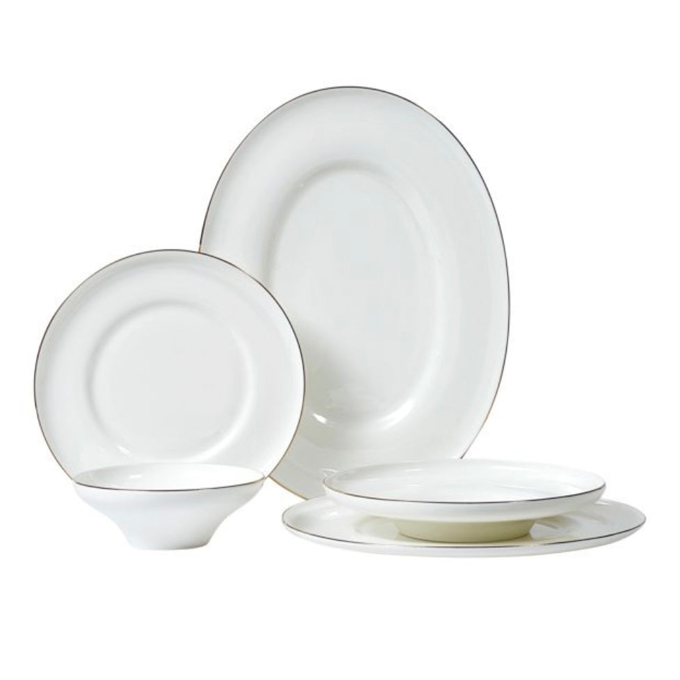 Bricard Macon porcelæns sættet kombinerer klassisk elegance med moderne gulddetaljer. Det stilrene design gør det ideelt til både daglig brug og festlige anledninger, hvor borddækningen skal have et eksklusivt præg.