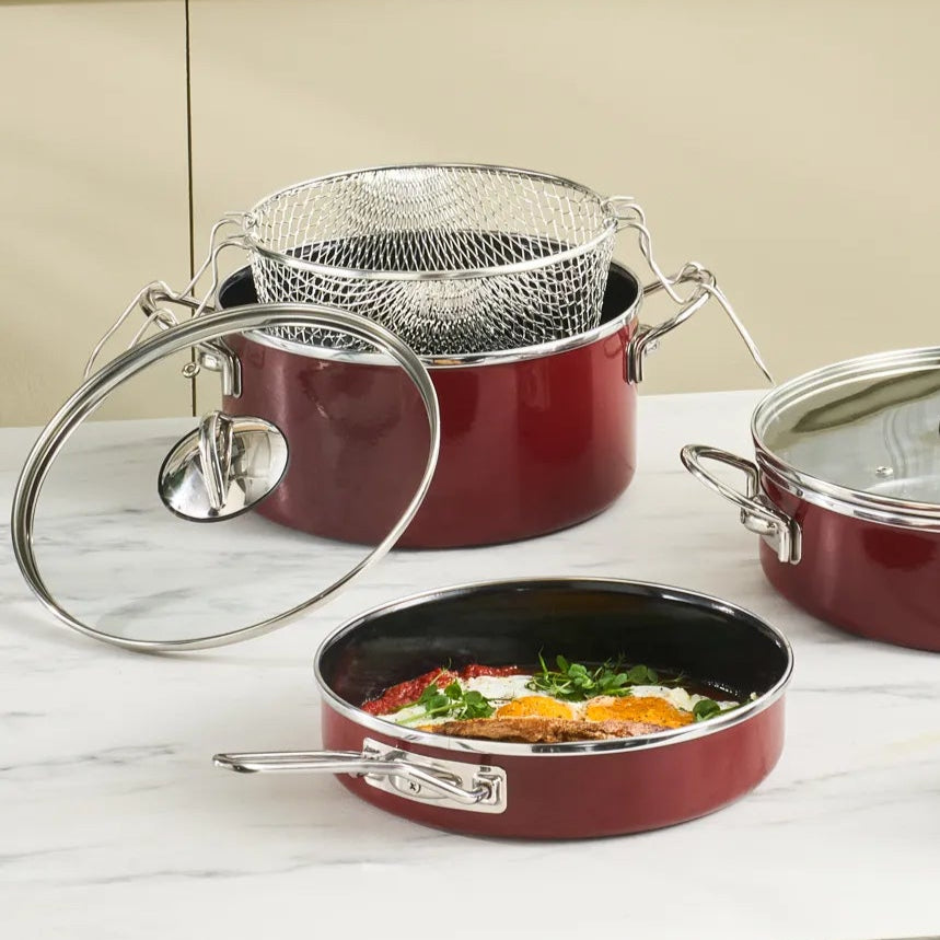 Karaca Erva Emaljeret Grydesæt med Induktionsbund i 14 dele – Bordeaux