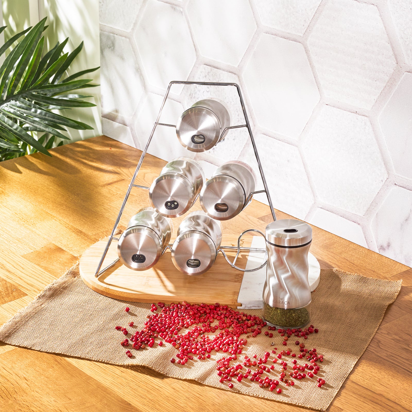 Karaca Tottori 7‑dele Glas Krydderisæt med Trekantet Stativ - Sølv