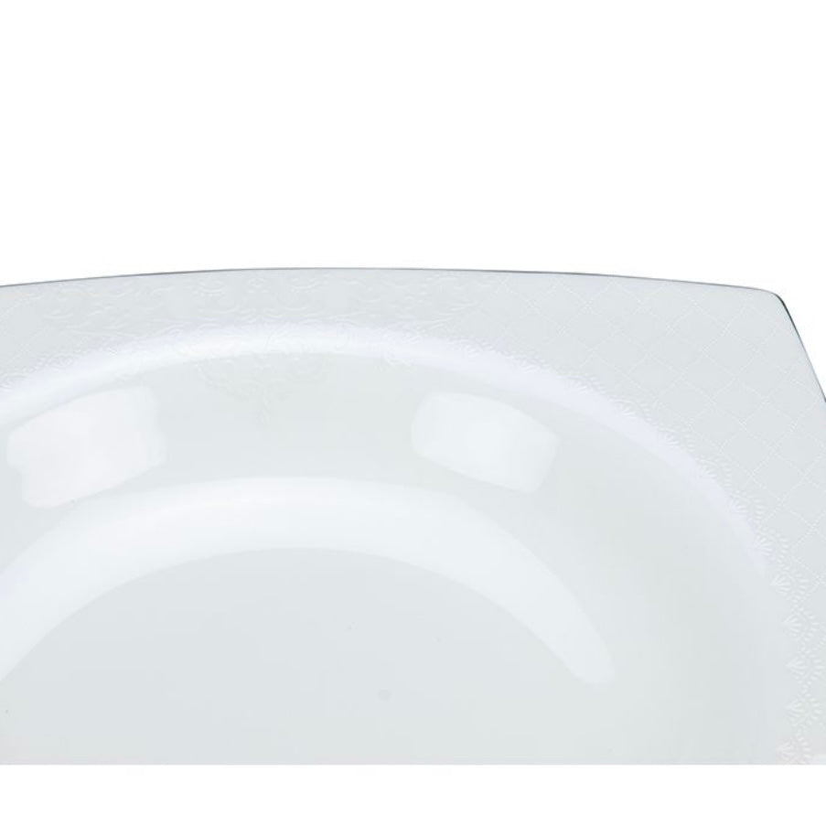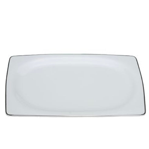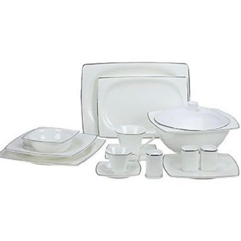 Dette elegante Lorient hvide porcelænssæt med sølv kant består af 80 dele. Sættet er ideelt til servering af mad til stort selskab - 12 kuverter