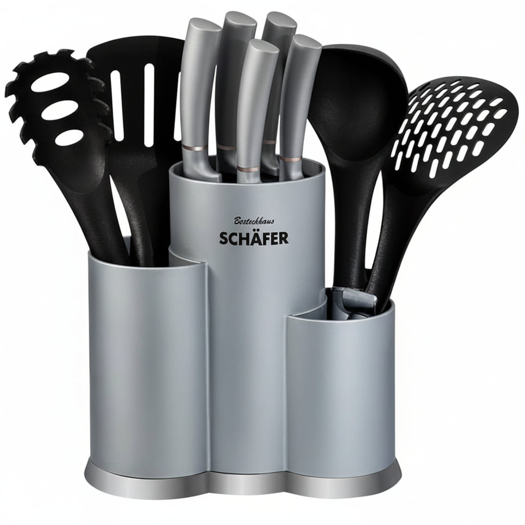 SCHÄFER Metallic Silver – 10-delt Kniv- og Køkkenredskabssæt