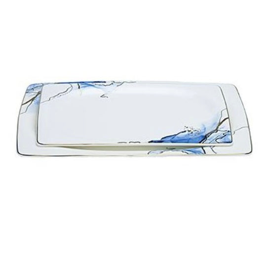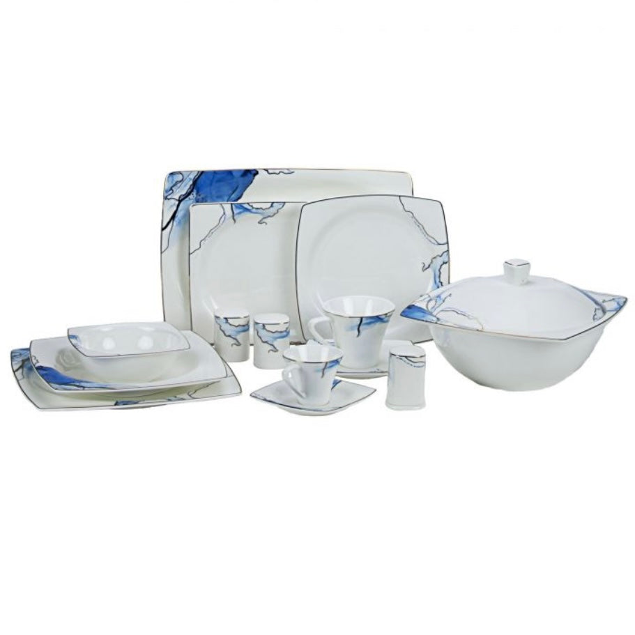 Dette elegante Orly hvide porcelænssæt med fin blå detalje består af 80 dele. Sættet er ideelt til servering af mad til store selskaber.