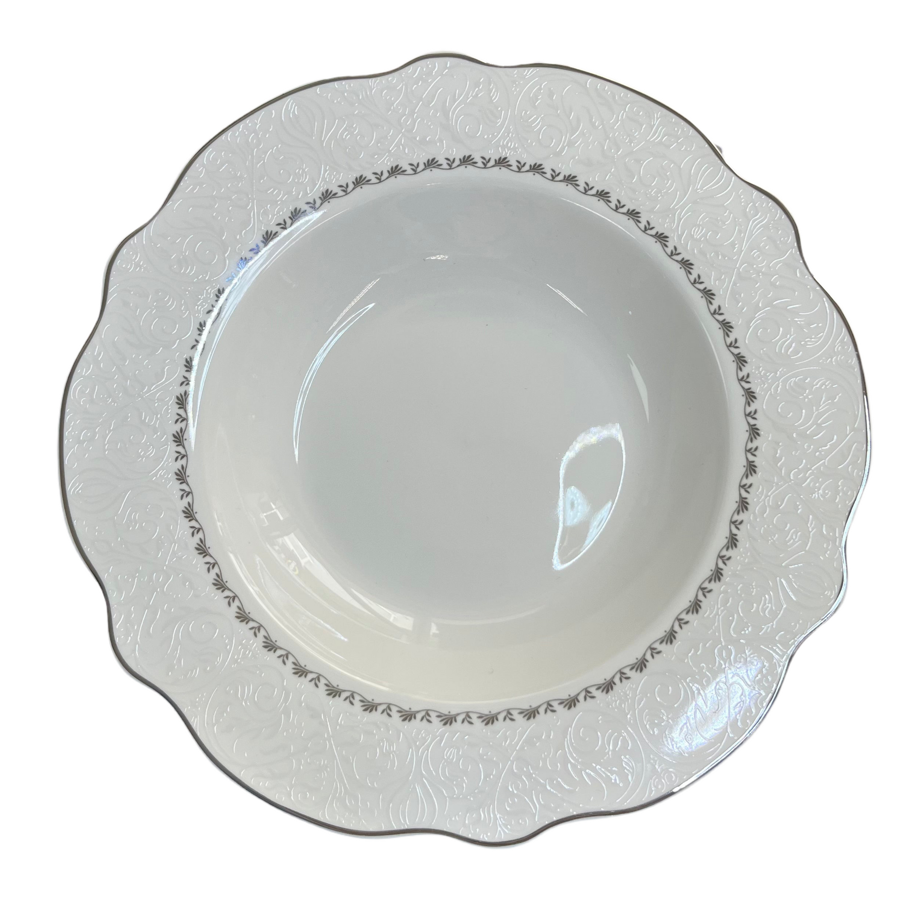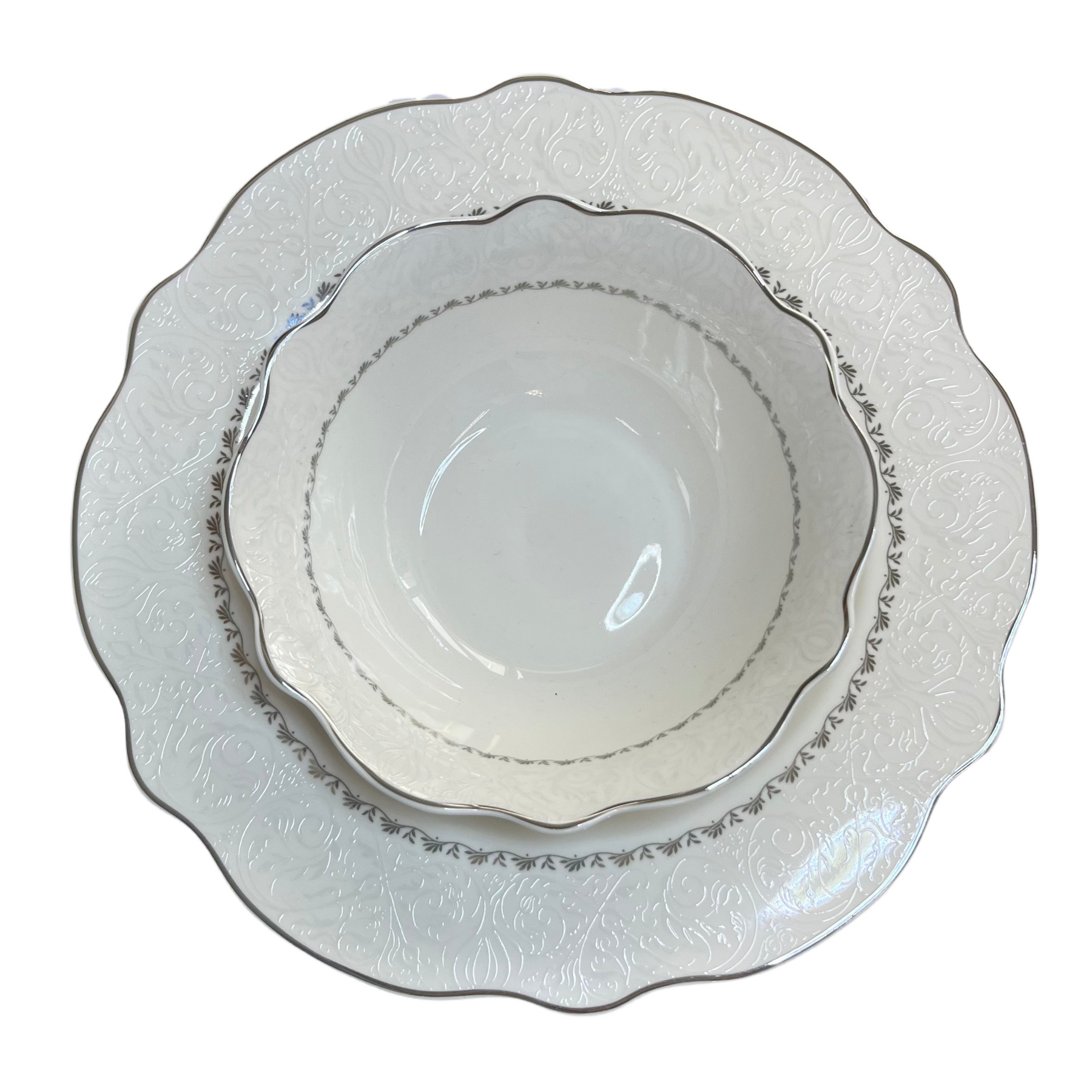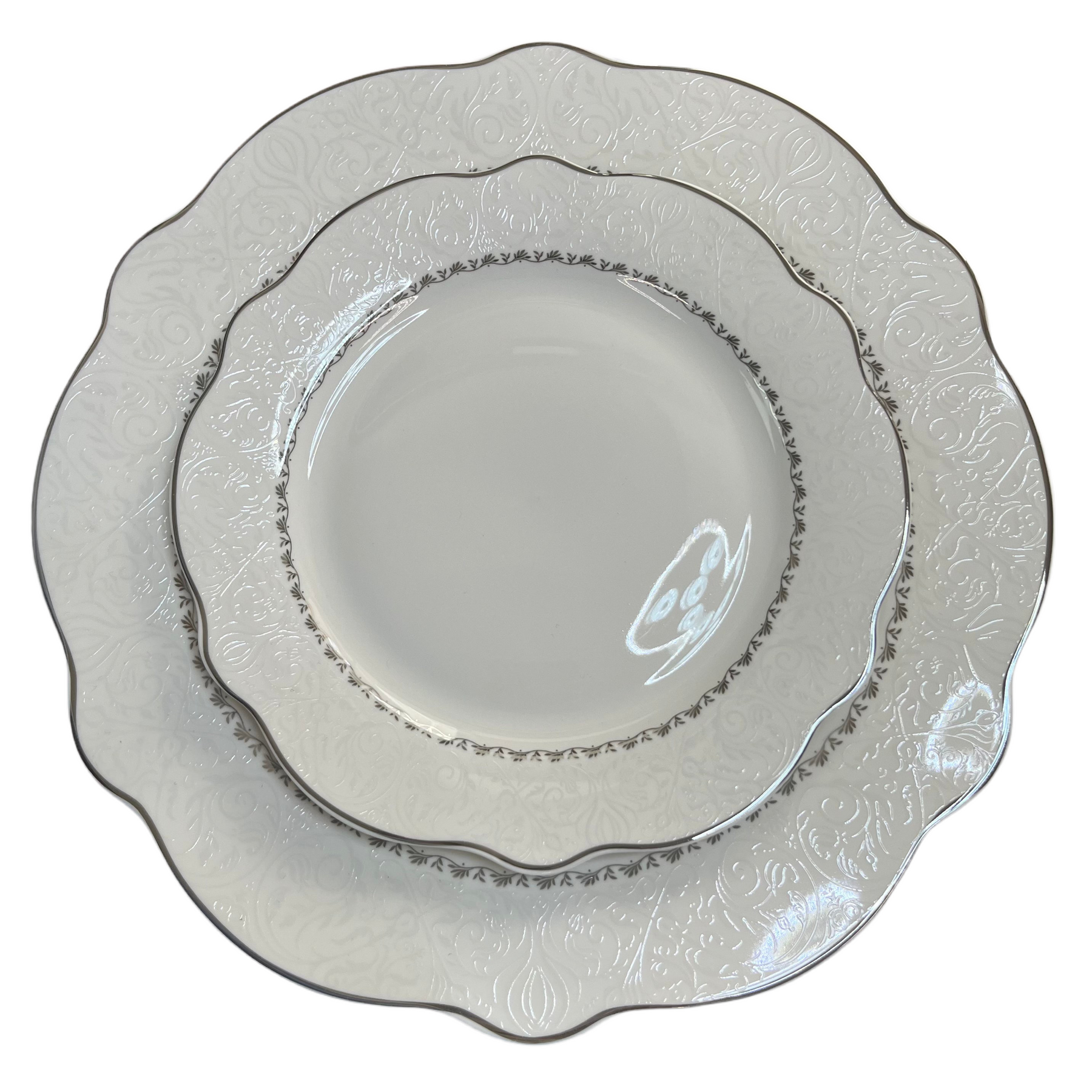 Eksklusiv tallerkensæt i 24 dele med sølvkant og bølget design fra Schäfer Apollon Silver Serien