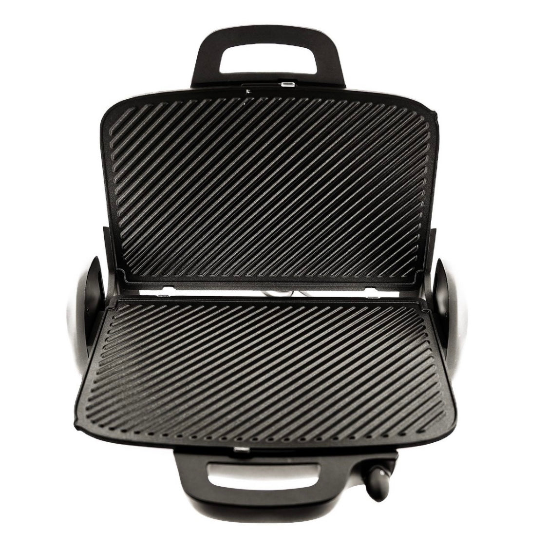 • Aftagelig støbejerns- og teflonbelagte grillplader.