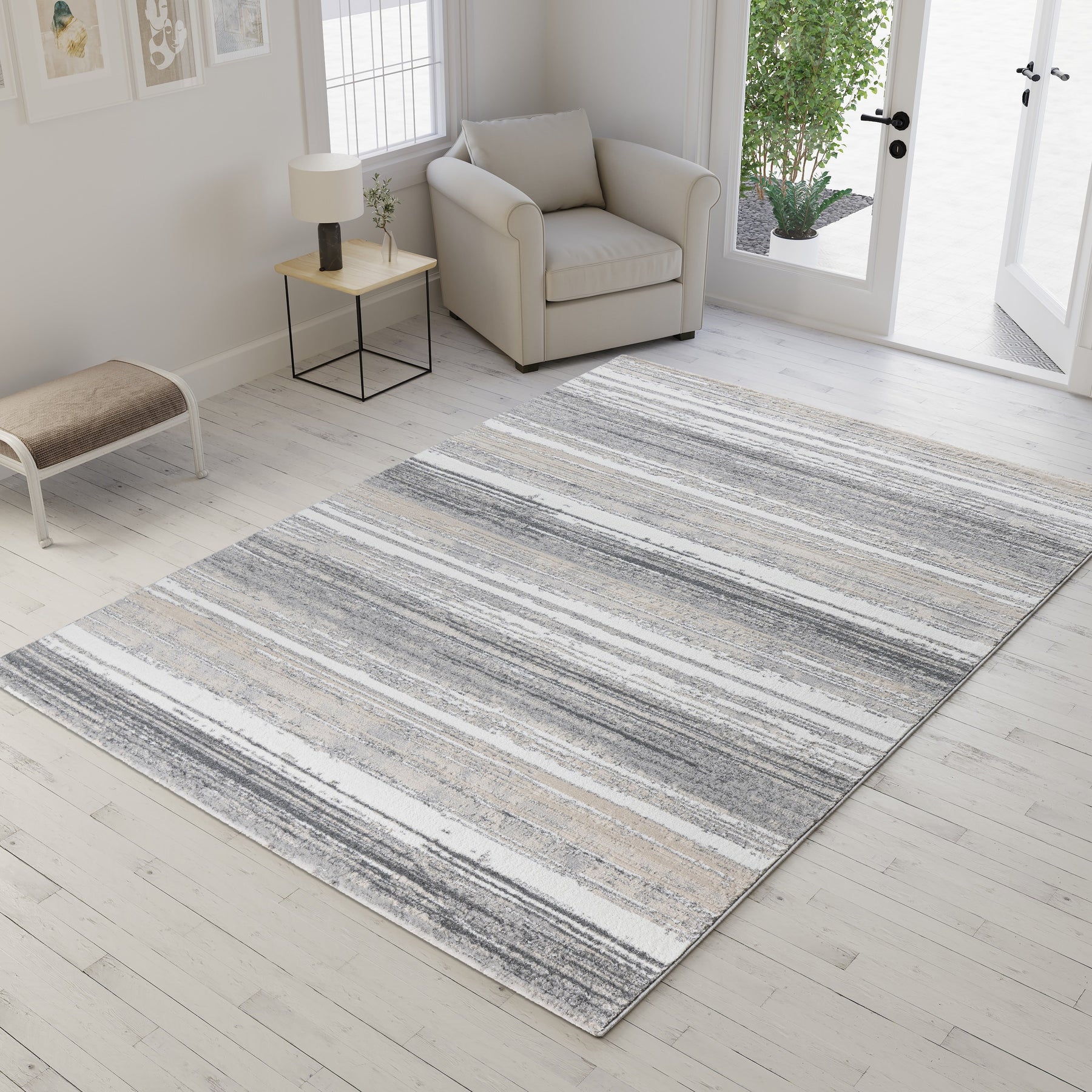 Det bløde mønster skaber et moderne og harmonisk udtryk, perfekt til både stue og soveværelse.