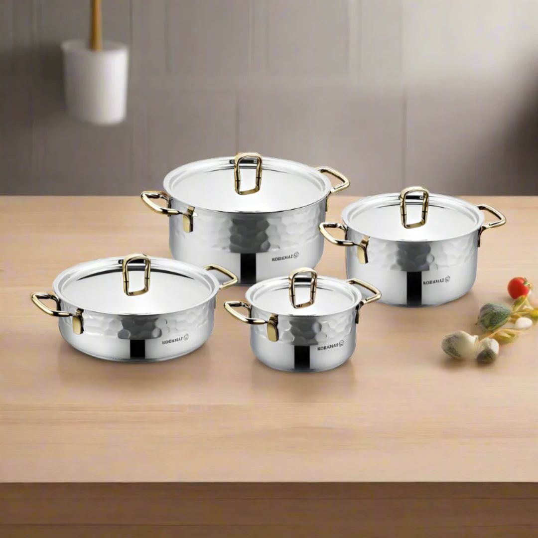 Korkmaz Erna Grydesæt m/Guldgreb - 8 Dele - 4 Størrelser
