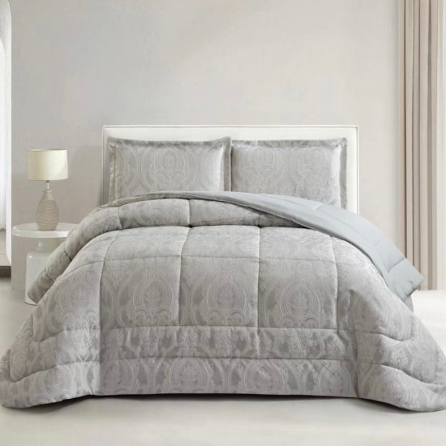 Lavella Firuze Sengetæppe Sæt 3 Dele | 240x260 cm | Grå | Damaskmønster