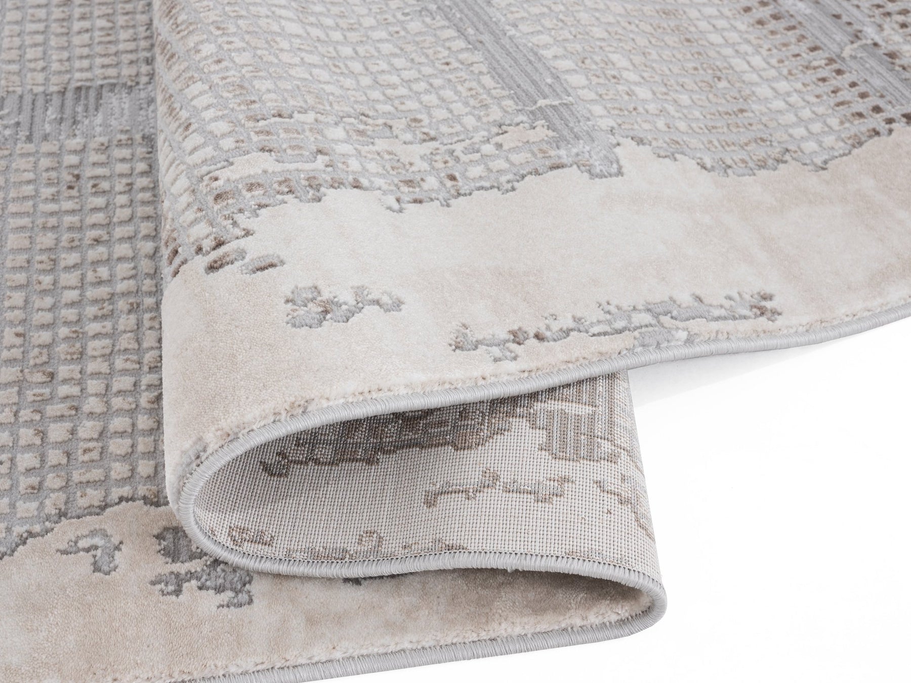Tæppet Pera i Cream har et elegant, moderne design, der skaber en hyggelig atmosfære. Det holdbare tæppe har et abstrakt mønster i creme og grå og passer ind i ethvert rum.