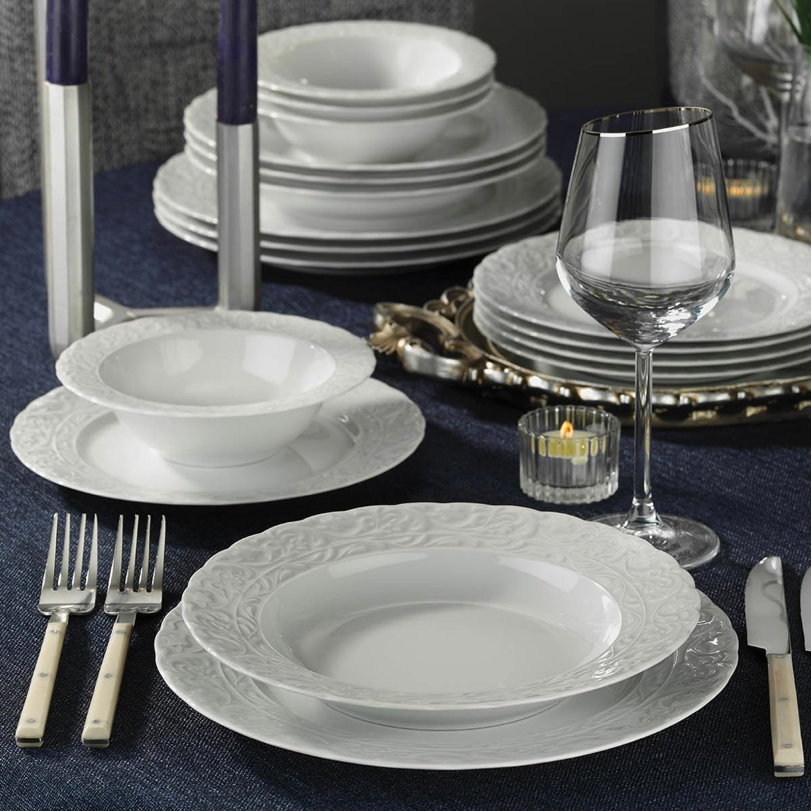 Elegant porcelæns serveringssæt i hvidt design fra Kutahya i 24 dele.