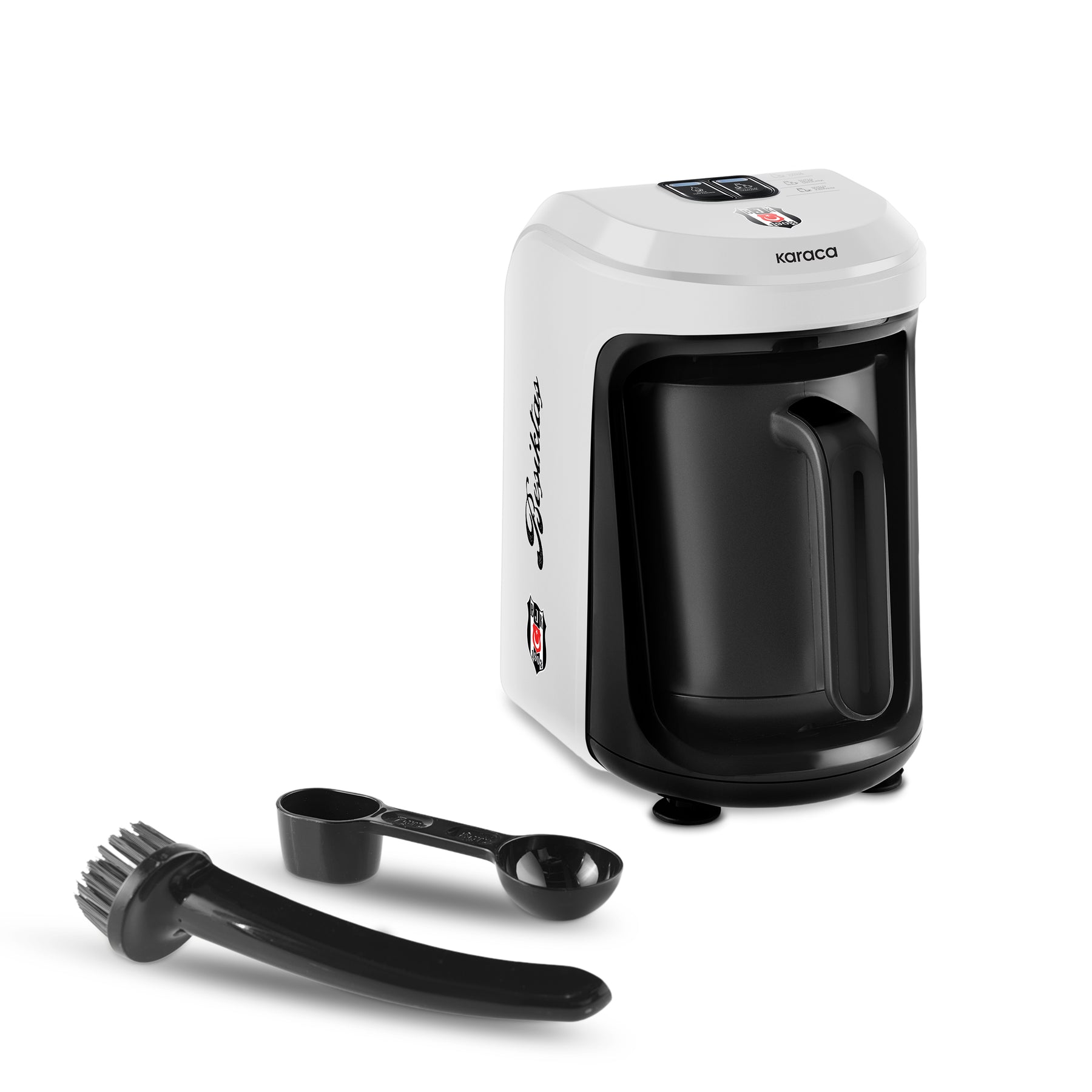 En stilfuld og funktionel kaffemaskine, der kombinerer tradition, teknologi og Beşiktaş-design – perfekt til kaffeelskere, der ønsker en autentisk kaffeoplevelse derhjemme.