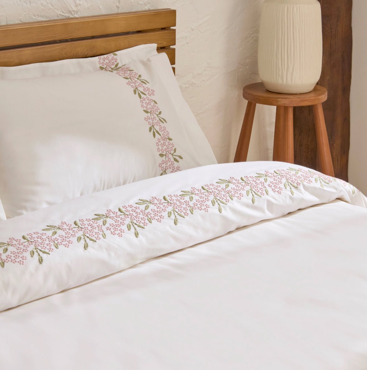 Karaca Home Rosven broderet dobbeltdyne-sengesæt – Hvid
