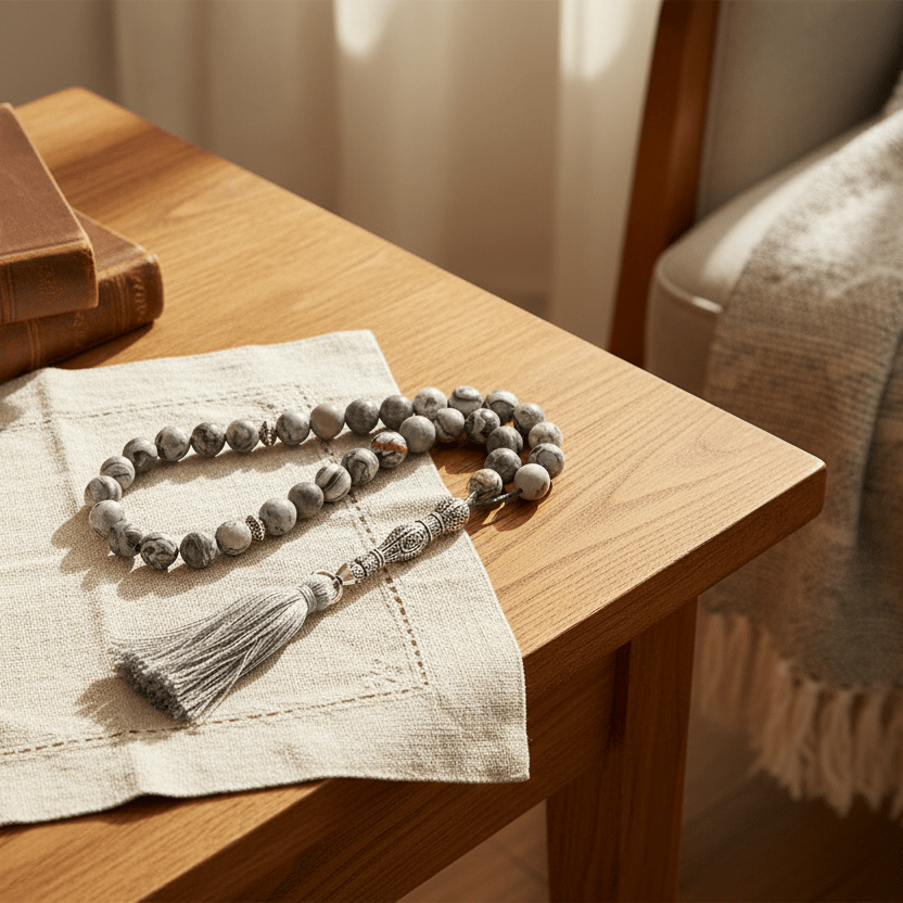 Et stilfuldt og kreativt tasbih-sæt, hvor ro, fordybelse og personlighed går hånd i hånd.