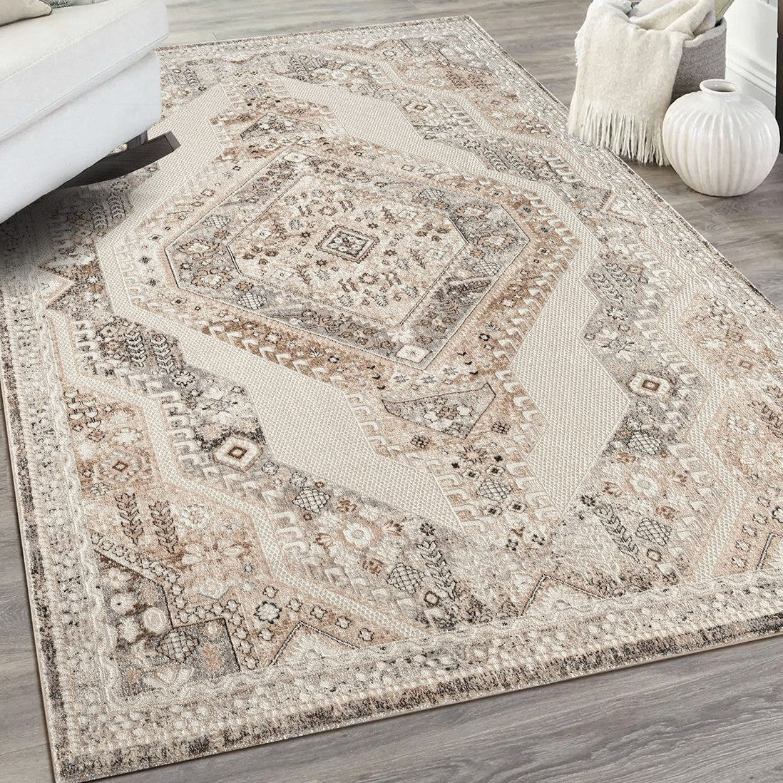 Moderne Tæppe i cream & grå