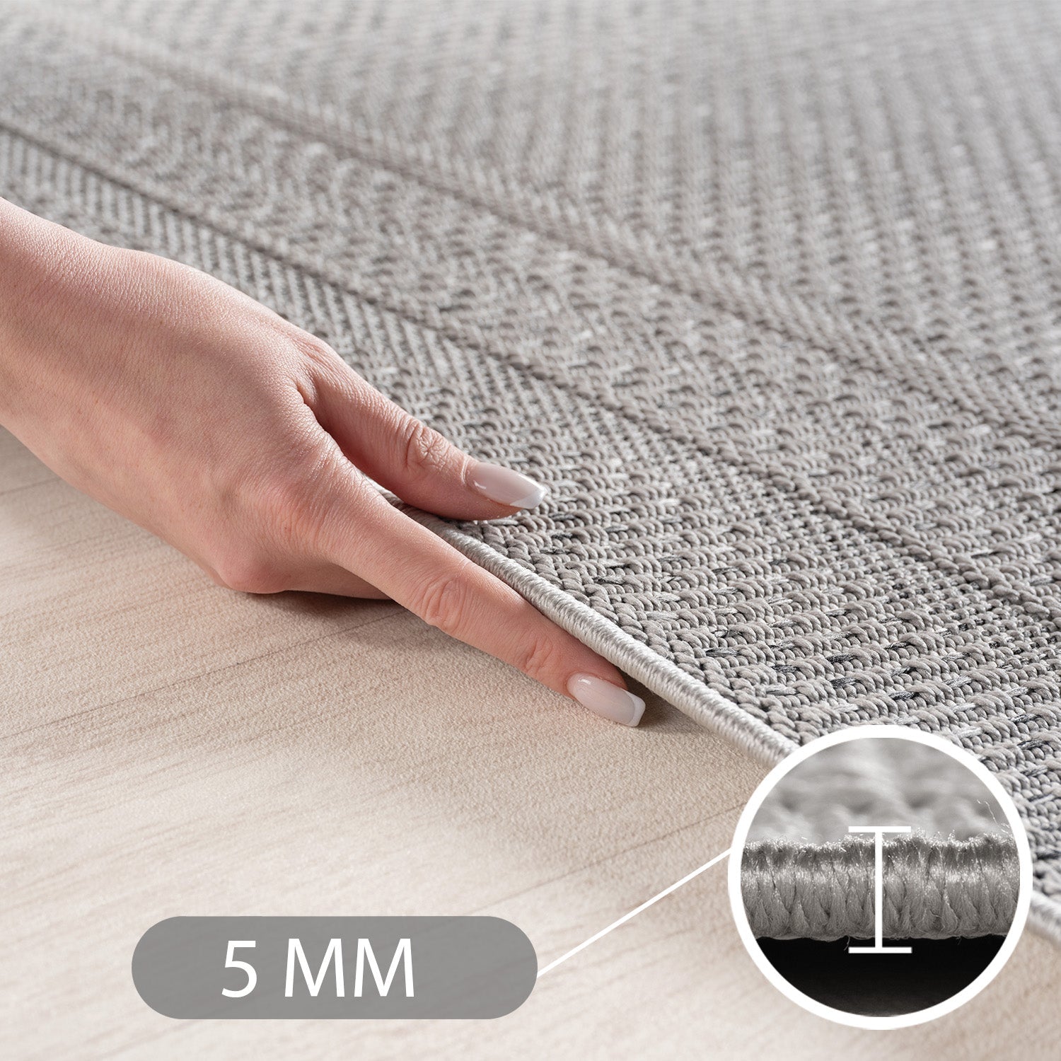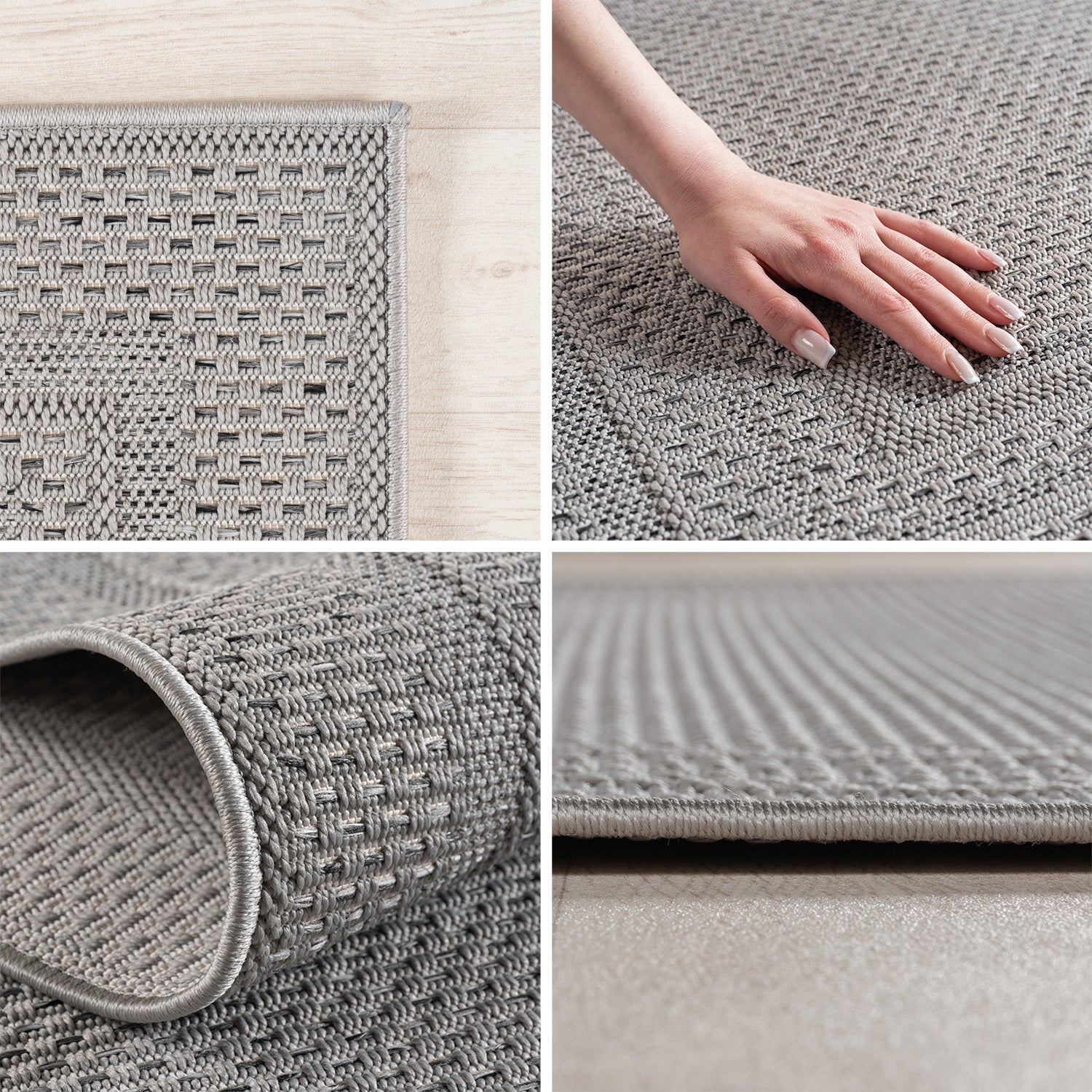 Det grå design med neutrale farver gør det nemt at matche med enhver indretning. Perfekt til dig, der ønsker et praktisk og stilfuldt tæppe til både inde og ude.