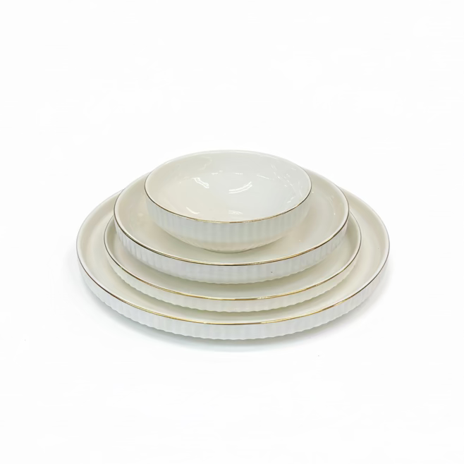Elegant porcelænsserveringssæt til 6 personer – 28 dele | Alara Vera – Hvid med guldkant