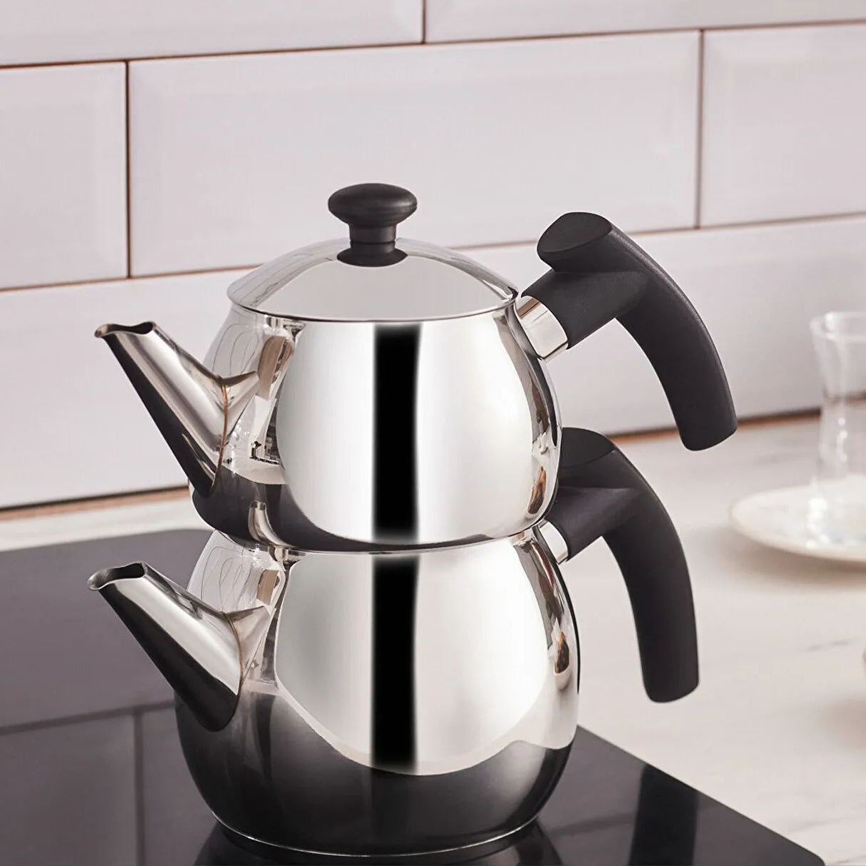 Nyd klassisk te-brygning i et kompakt og elegant design med Karaca Adelya mini-tepottesæt. Dette stilfulde sæt er fremstillet i stål og udstyret med induktionsbase, hvilket gør det velegnet til moderne køkkener. Det elegante udtryk i sort og sølv passer perfekt ind i både klassiske og moderne indretninger.