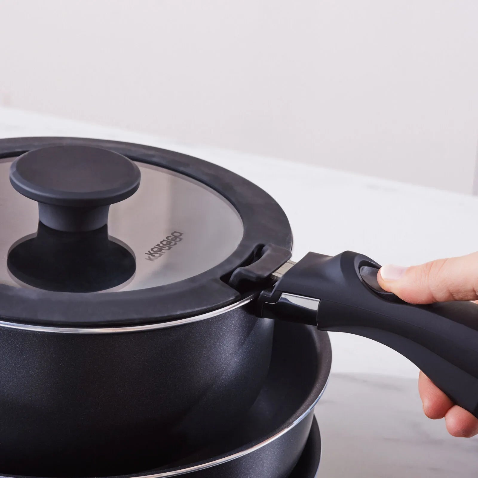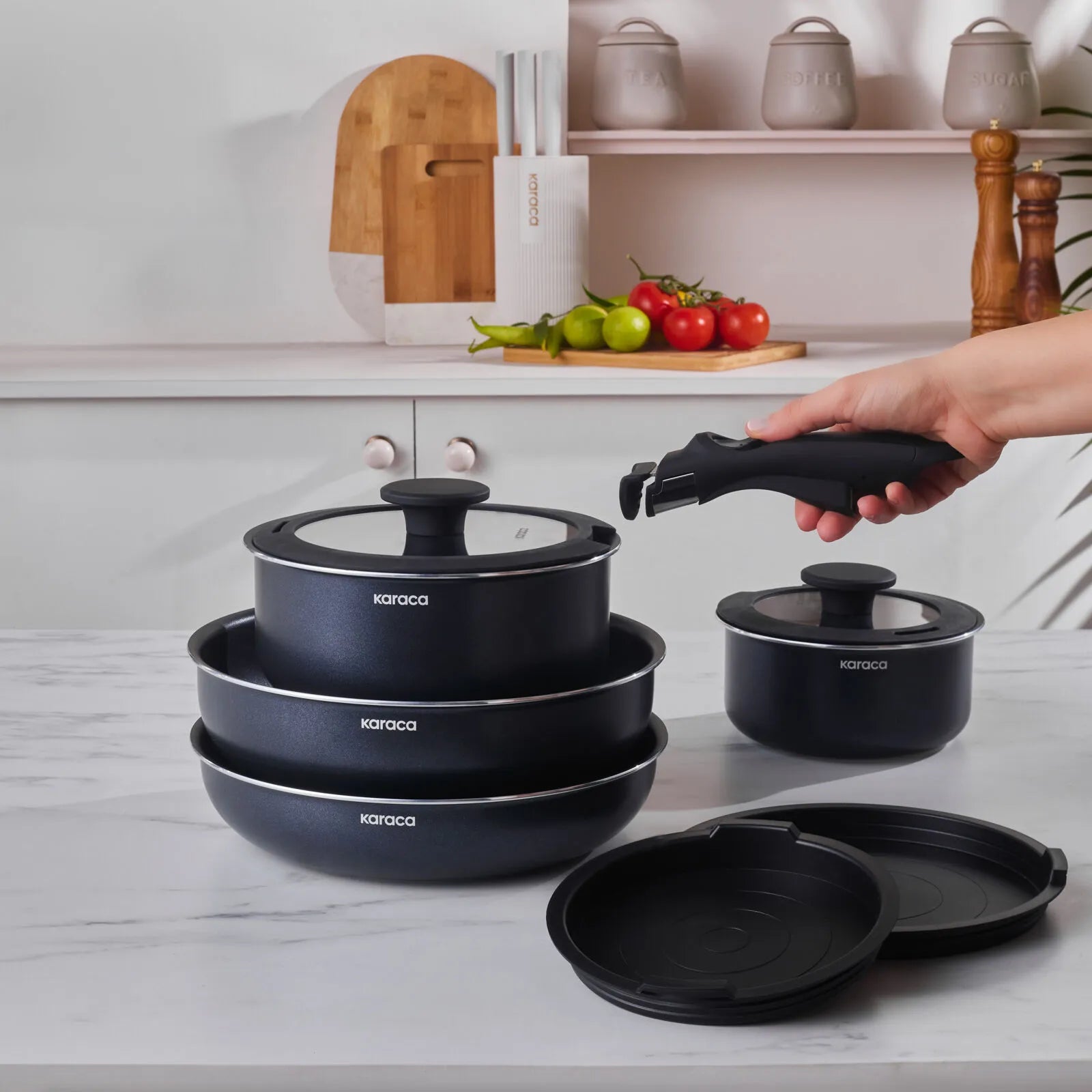Et innovativt og alsidigt grydesæt fra Karaca, der kombinerer høj ydeevne, holdbarhed og smart design – perfekt til det moderne køkken.