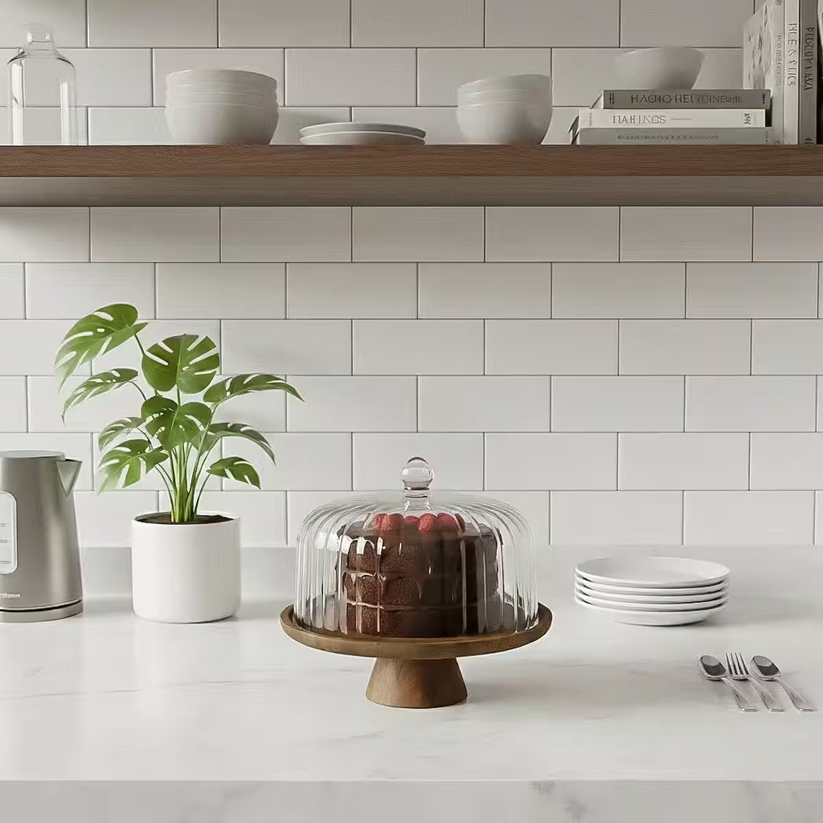 • Klar glaskuppel: Den store kuppel (28 cm) beskytter dine kager mod udtørring, støv og insekter, samtidig med at gæsterne kan beundre dine kreative anretninger.